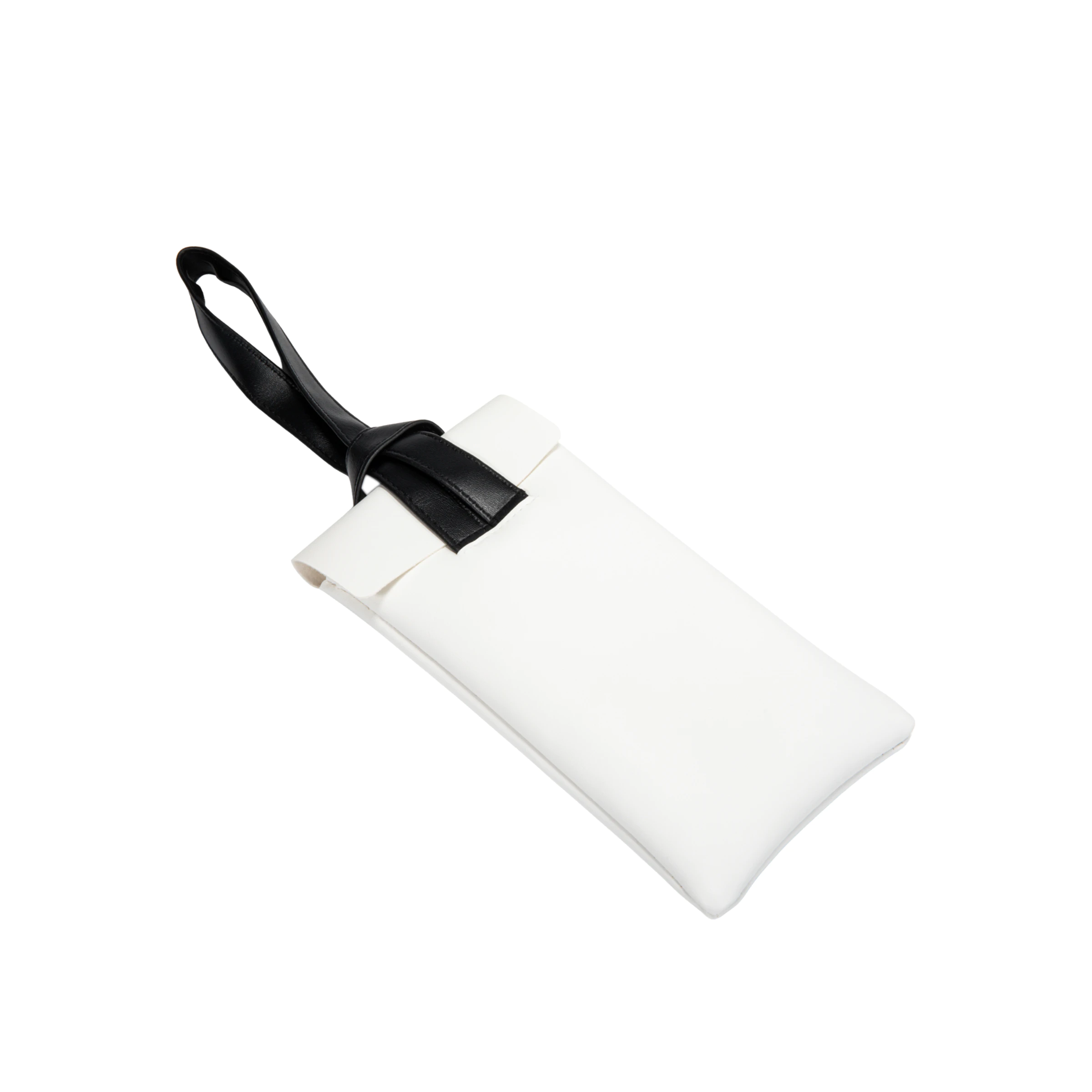 This minimalist white pouch features a soft padded body and a contrasting black loop handle. Its clean, modern design offers essential protection for your eyewear, making it a practical and discreet everyday carry case.