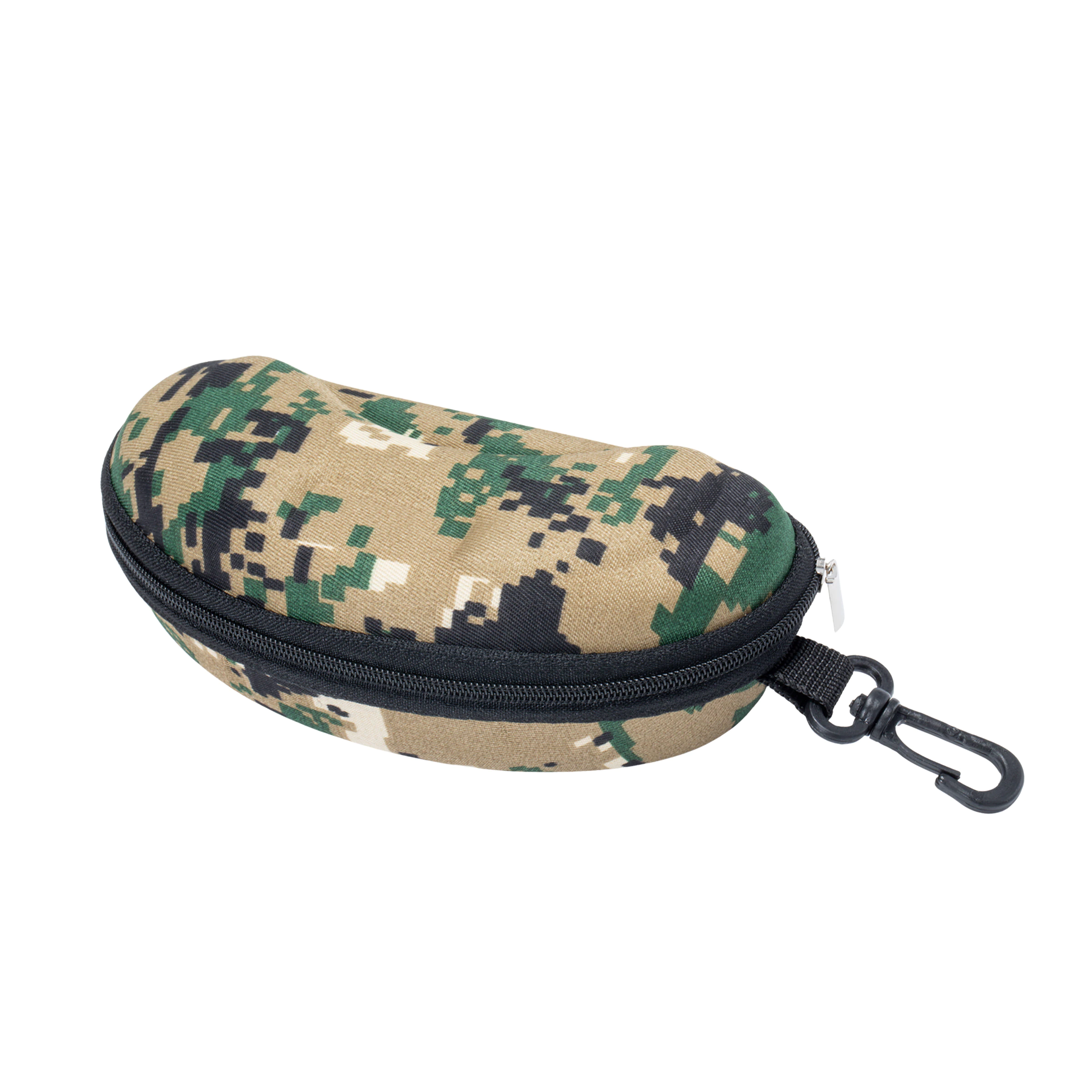 Designed for the outdoors, this green and tan camouflage case combines a rugged look with practical function. The secure zipper and attached carabiner clip make it ideal for hiking or travel, ensuring your glasses are always safe and accessible.