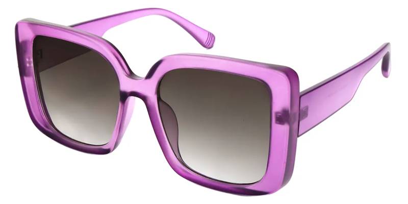 These sunglasses exude a chic and contemporary vibe with their frosted purple transparent frames. The square shape is a trendy choice, and the unique color adds a playful touch. They're perfect for those who want to stand out and make a fashion statement while protecting their eyes from the sun's rays.