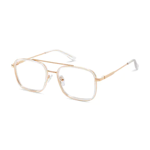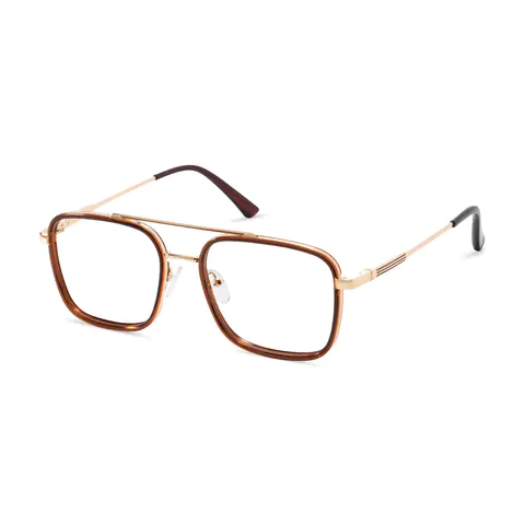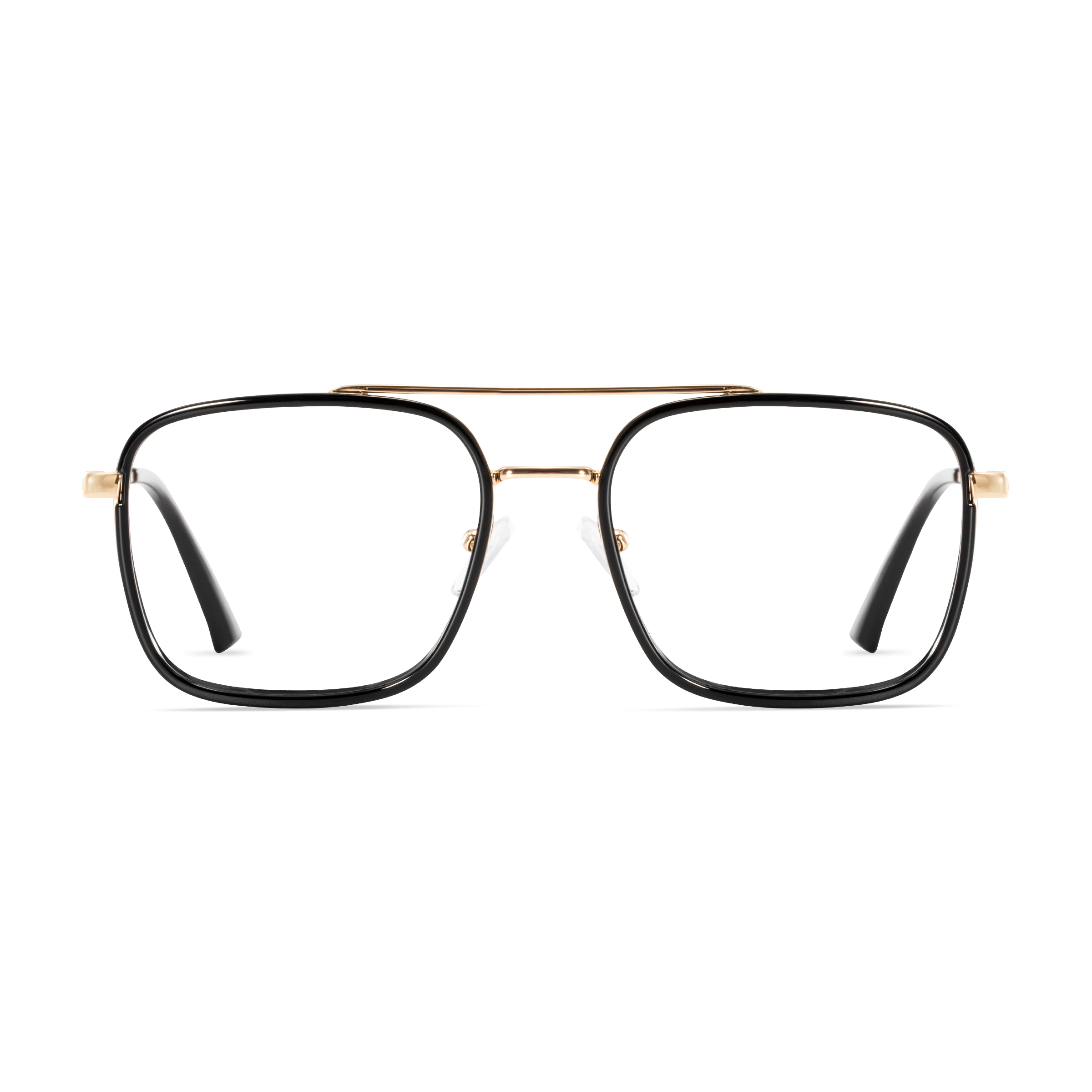 These square metal eyeglasses feature a slim gold frame with a black rim accent, offering a refined and contemporary look. The lightweight design and double bridge give it a modern, sophisticated edge.