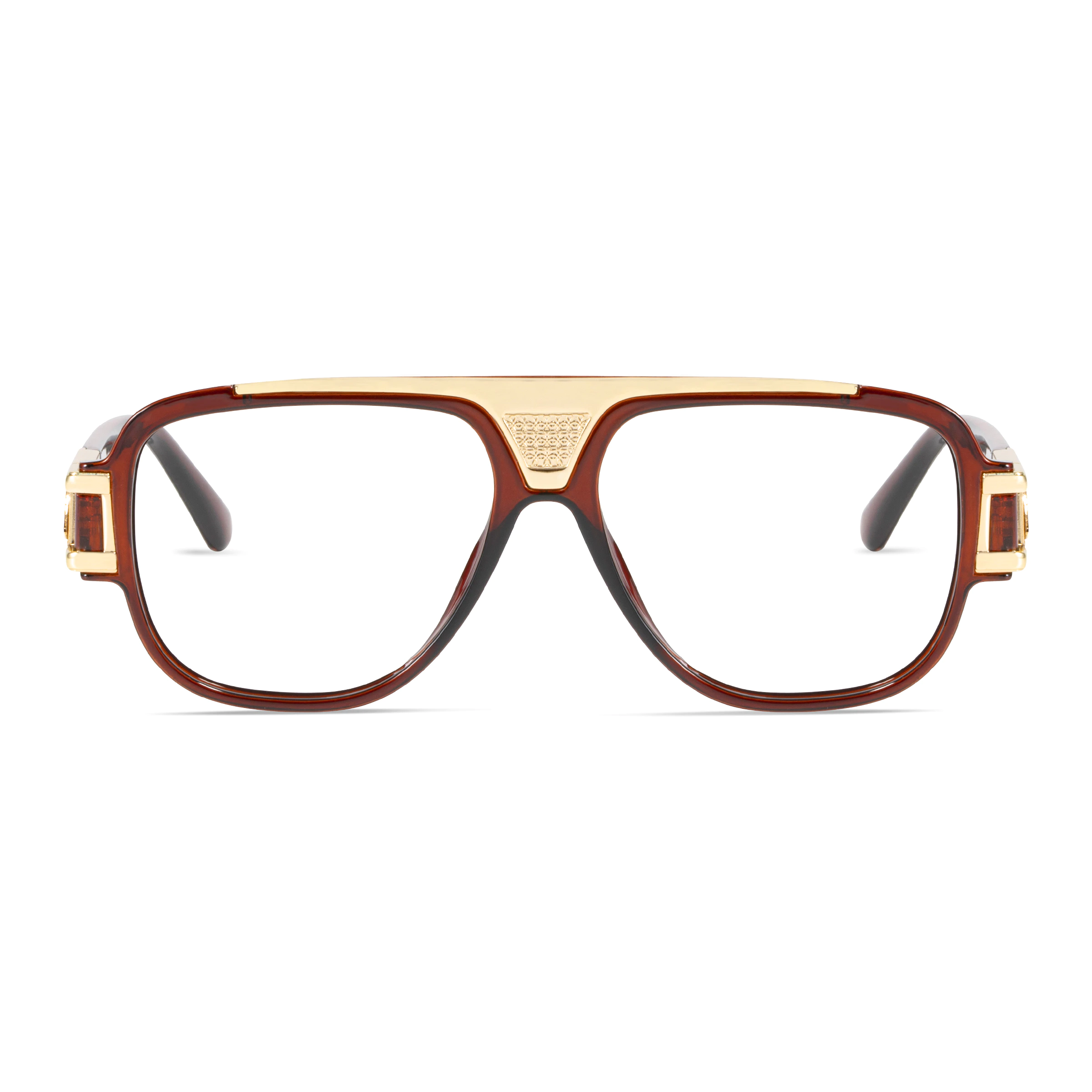 Featuring warm light brown PC, these frames convey understated luxury. Their clean, architectural design provides a versatile and polished choice for daily wear and smart leisure ensembles.