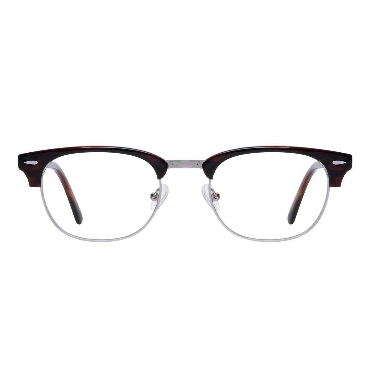 These brown-silver browline glasses offer a unique blend of vintage charm and contemporary elegance. The rich brown acetate contrasts elegantly with the silver metal accents for a stylish finish.