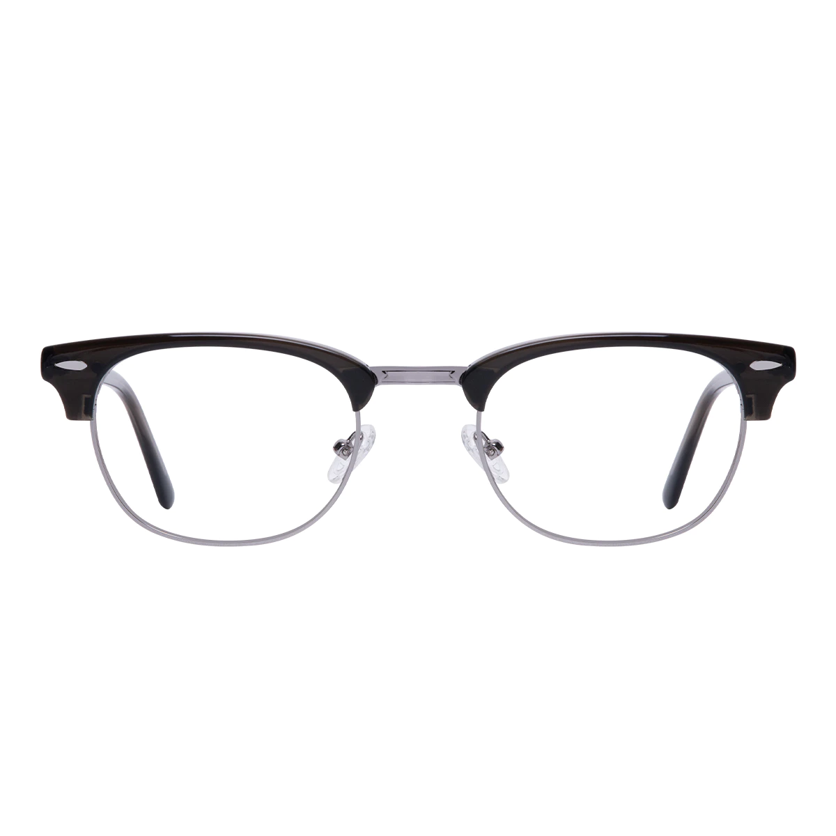 Elevate your eyewear collection with these grey-silver browline glasses. The subtle grey acetate frame combined with shiny silver metal accents offers a refined and stylish appearance.