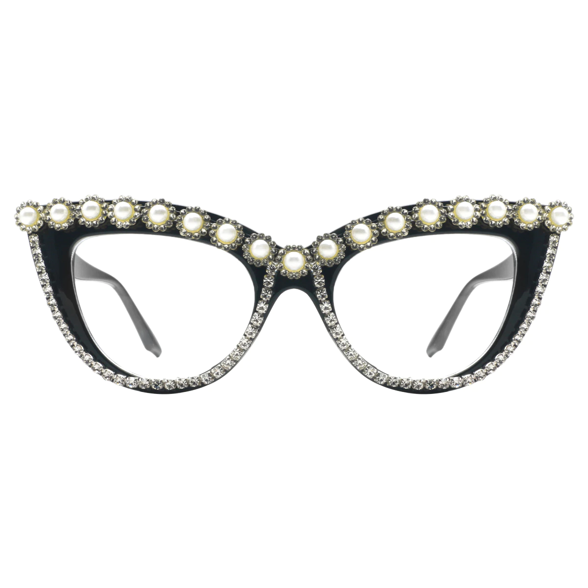 The Black with Pearls full-rim cat-eye glasses exude timeless elegance and femininity. The black PC frame is enhanced with delicate pearl accents, creating a sophisticated and graceful look. Lightweight and comfortable, these glasses are ideal for professional settings or elegant social events.
