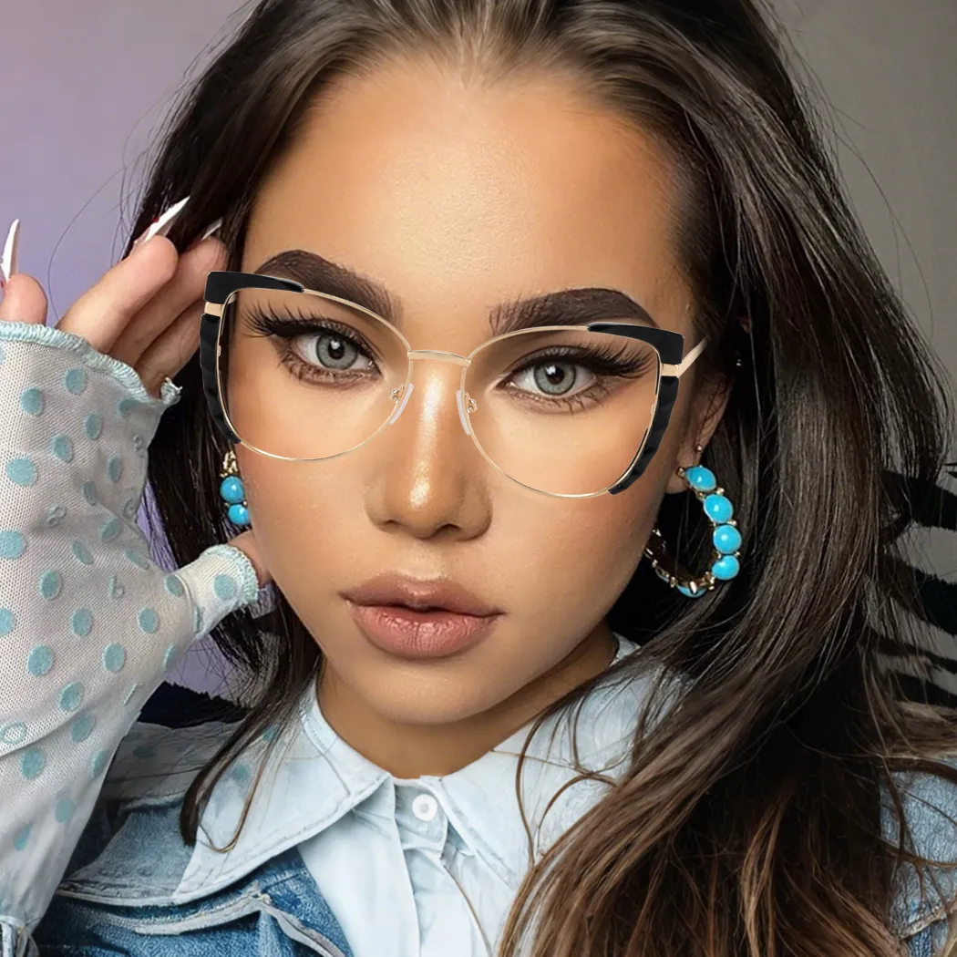 The Black cat-eye frame offers a bold, contemporary look. The cool blue tone paired with silver accents creates a striking contrast, adding a modern edge to your eyewear.