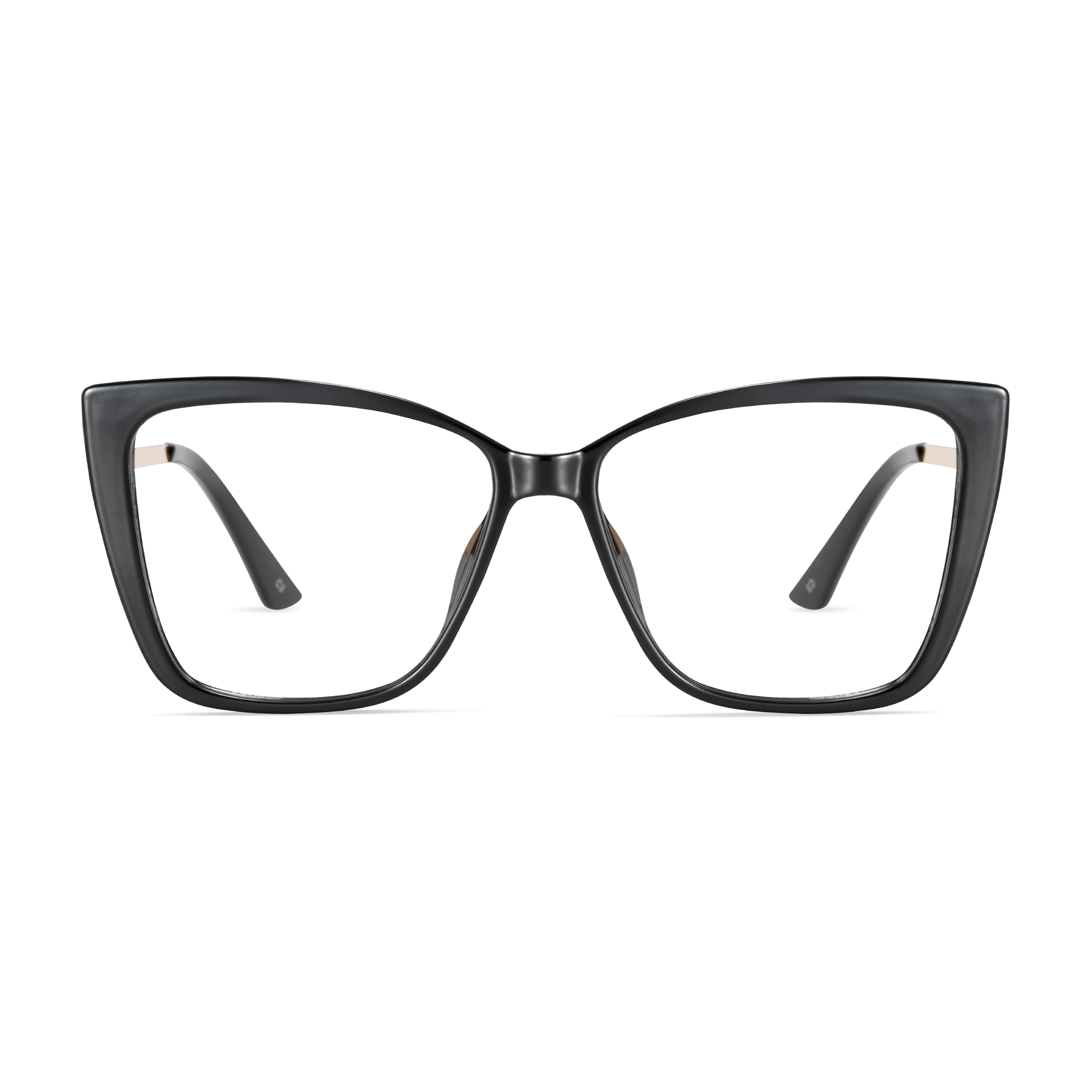 Black cat-eye glasses combine a sharp silhouette with gold metal temples, offering a bold yet elegant look. Lightweight and durable, perfect for work, events, or everyday wear.