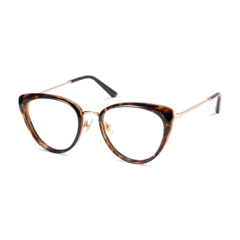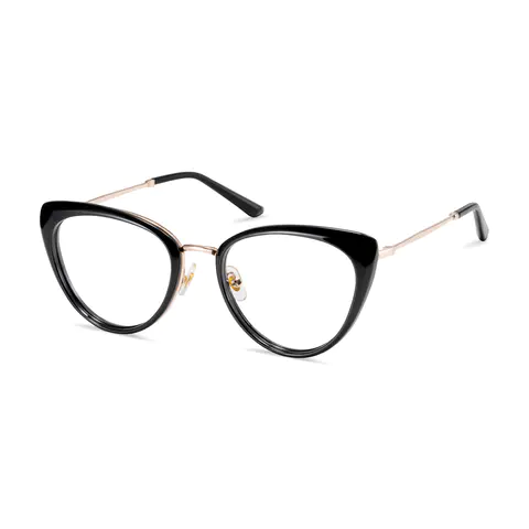 Featuring a bold cat-eye silhouette with black acetate upper frames and contrasting gold metal accents, these glasses exude modern sophistication. The TR90 and metal hybrid construction ensures lightweight durability, perfect for making a stylish statement in professional settings or evening events.