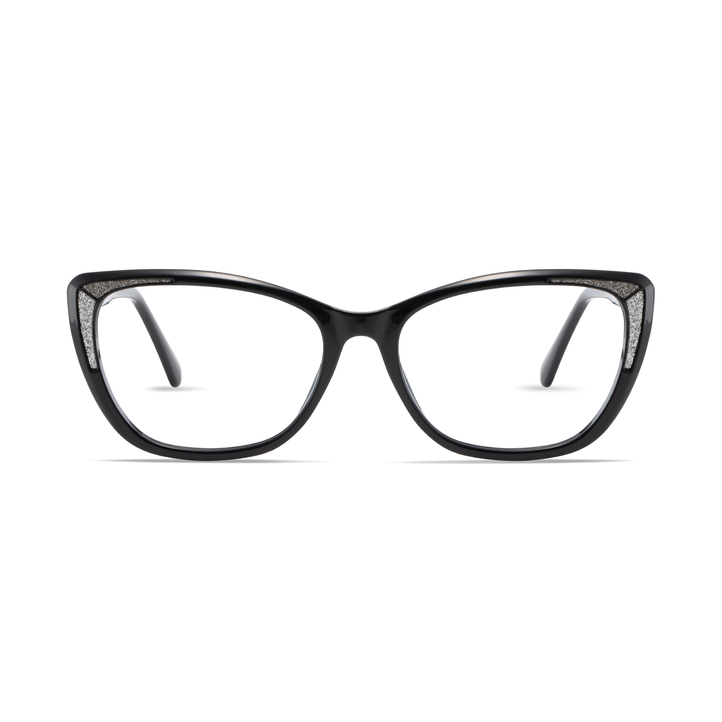 These black cat-eye frames feature sparkling corner accents and rose gold temple detailing for a touch of elegance. Ideal for fashion-forward wearers, they elevate office attire, evening events, and polished everyday looks with modern glamour.
