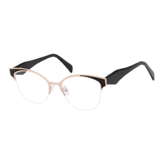 Revitalize your accessory collection with our pink gold-black cat-eye glasses. Featuring a full-rim design, these frames merge the opulence of pink gold with the sleek allure of black acetate and meta...