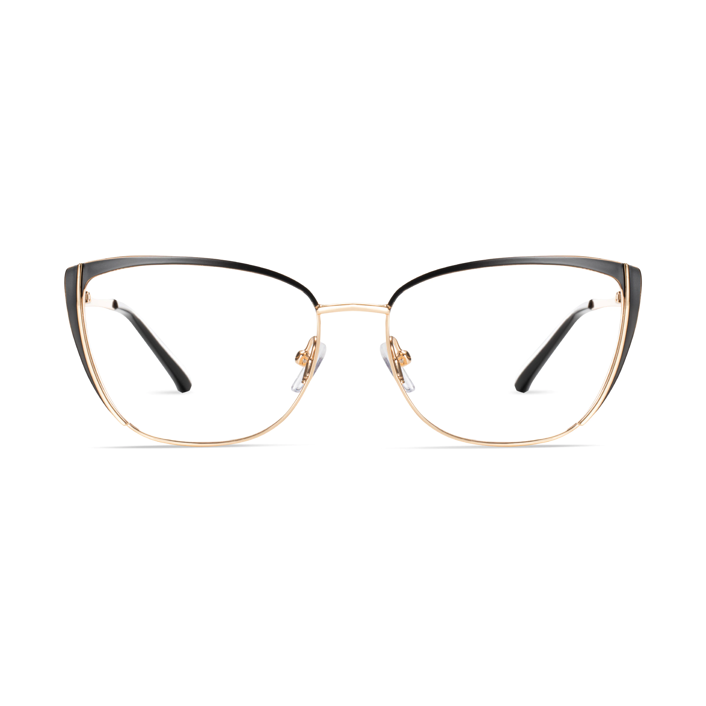 Sleek gold frames paired with bold black accents on the rims and temple ends offer a modern contrast. Perfect for evening events or professional settings, they blend sophistication with a sharp, contemporary edge.