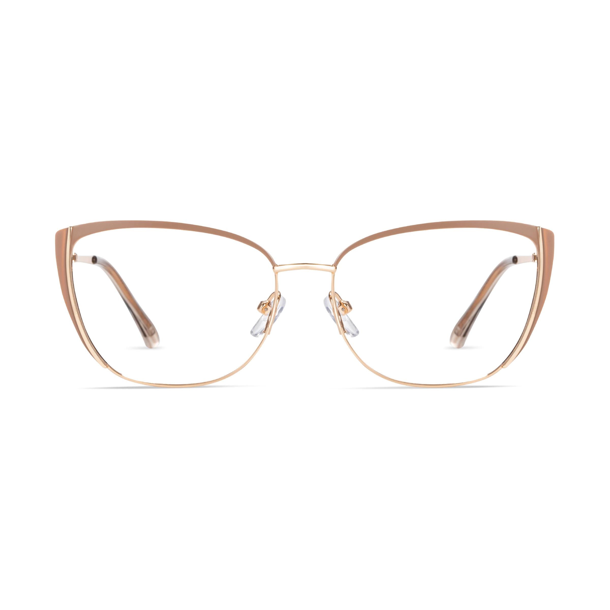 Minimalist gold metal frames with brown temple tips provide a fresh, versatile style. Great for daily wear or casual outings, these glasses combine subtle detailing with effortless elegance.