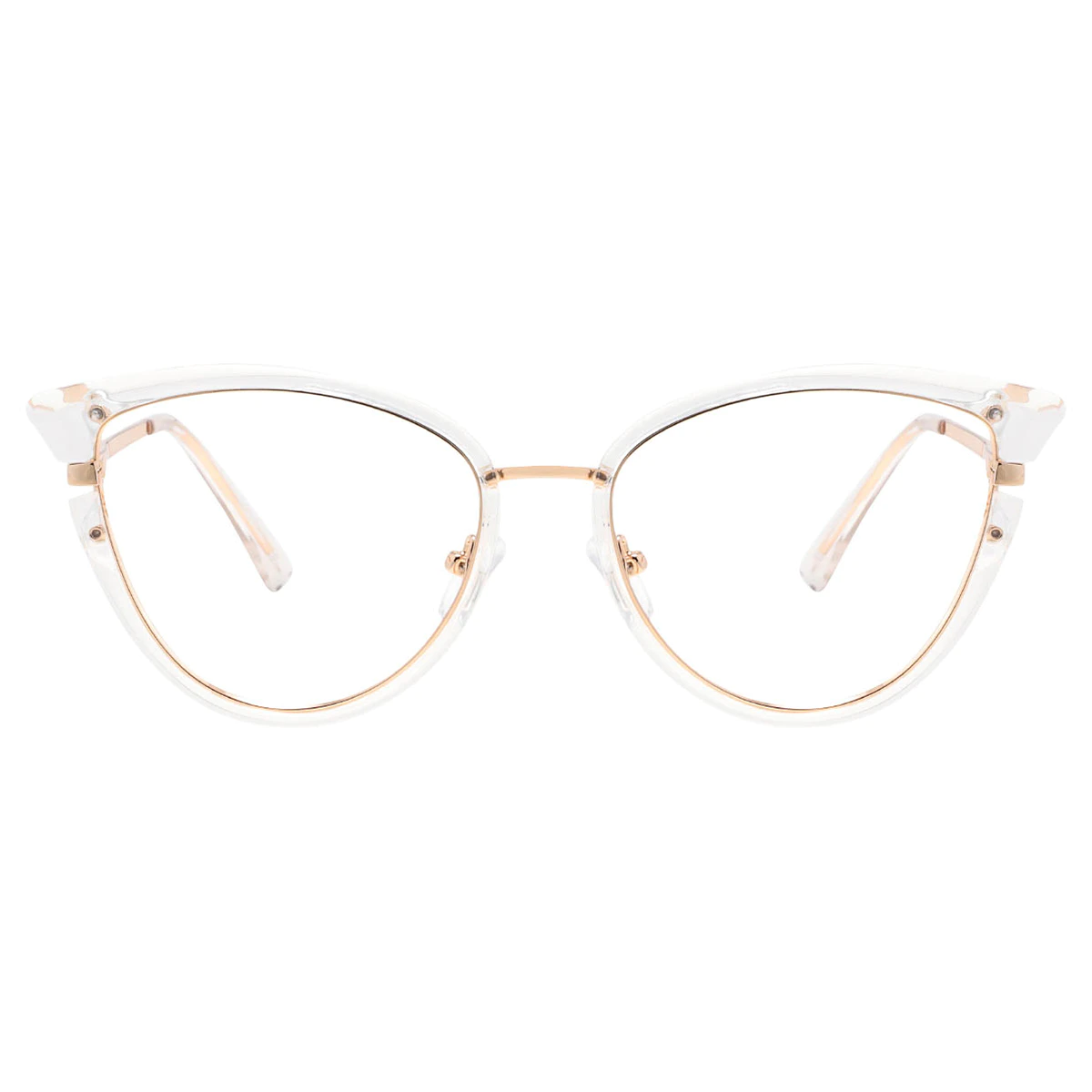 The Translucent full-rim cat-eye glasses bring a fresh, modern twist to a classic design. The clear TR90 frame paired with metallic accents offers a light and airy feel, making these glasses an excellent choice for everyday wear. Perfect for those who love minimalistic style with a trendy edge.