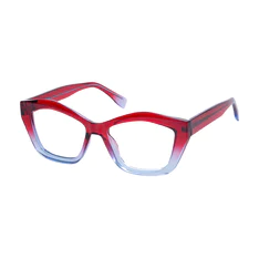 Brighten up your look with these red-blue cat-eye eyeglasses. The lively red frame and elegant blue accents come together to create a fun and stylish eyewear choice.