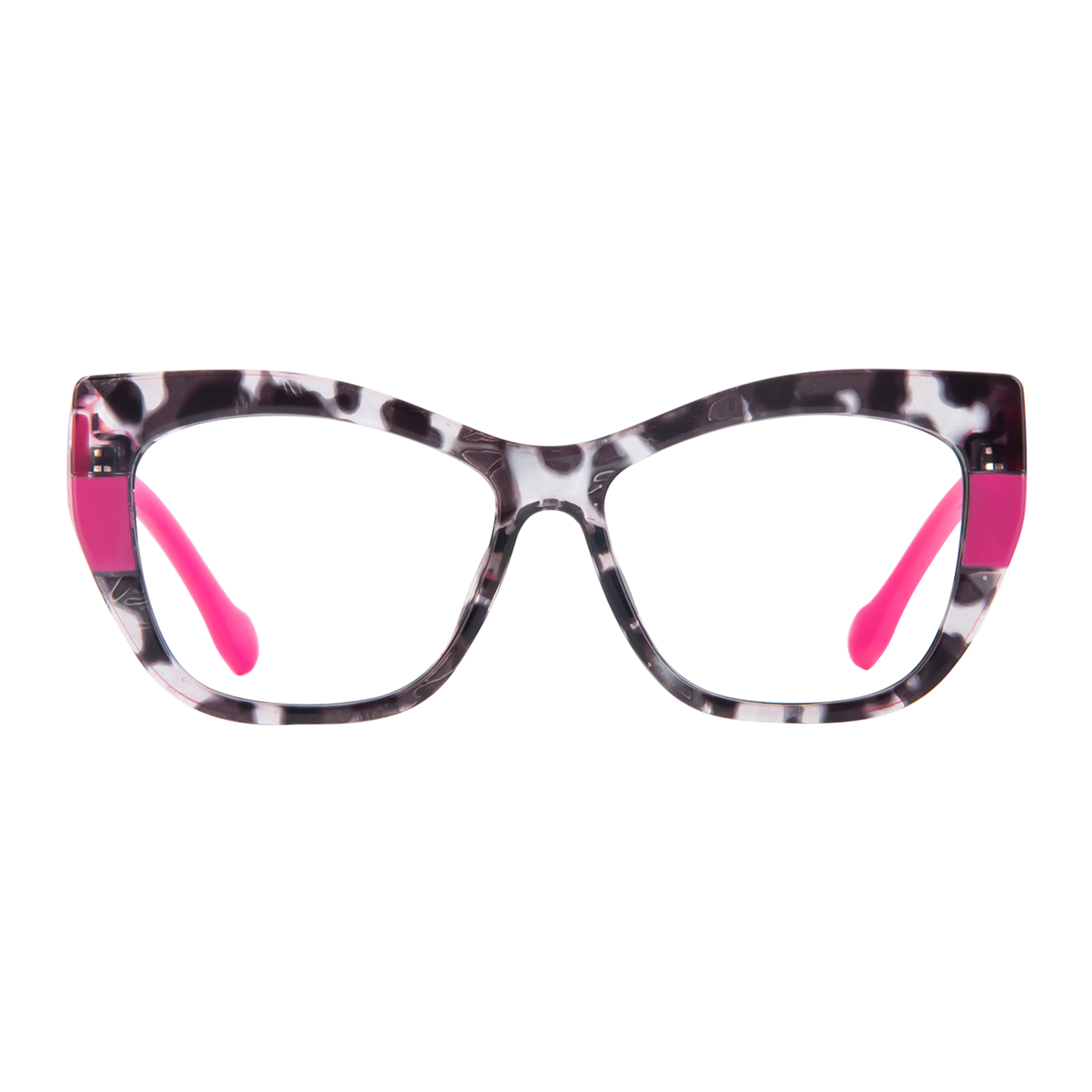 Add a touch of elegance with the Ivory Tortoiseshell-Pink Cat-Eye glasses. The sophisticated ivory tortoiseshell paired with a hint of pink gives these glasses a fashionable edge. Perfect for enhancing your look for special occasions or everyday elegance.
