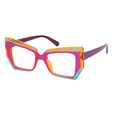 Vibrant purple and orange hues combine in these Cat-eye glasses, offering a bold and lively look. The TR90 material provides durability and comfort, making these glasses ideal for adding a pop of color to any outfit.