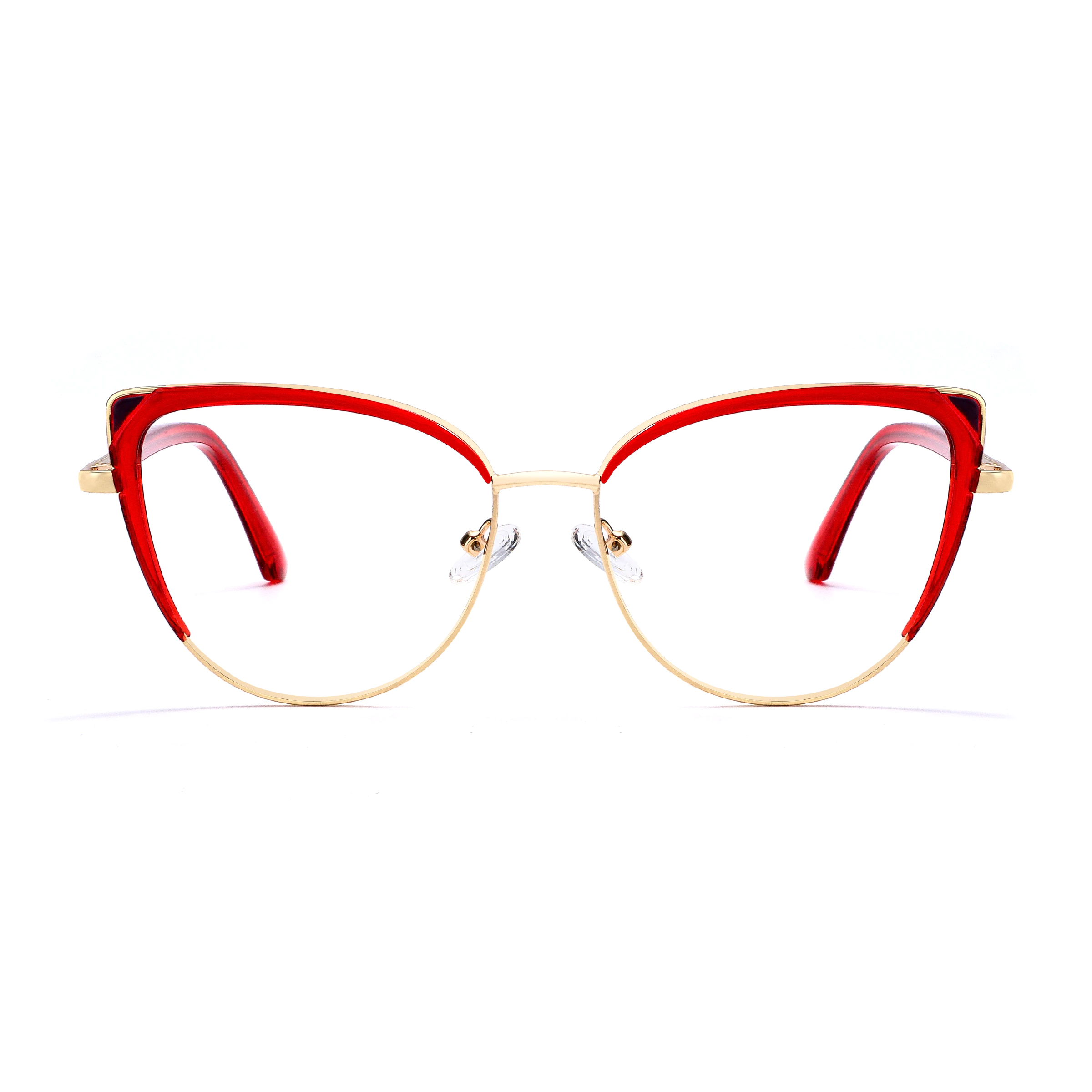 The Red-Gold cat-eye glasses are perfect for making a bold fashion statement. The rich red frame combined with gold accents adds a touch of glamour, ideal for those who love a vibrant, eye-catching look.