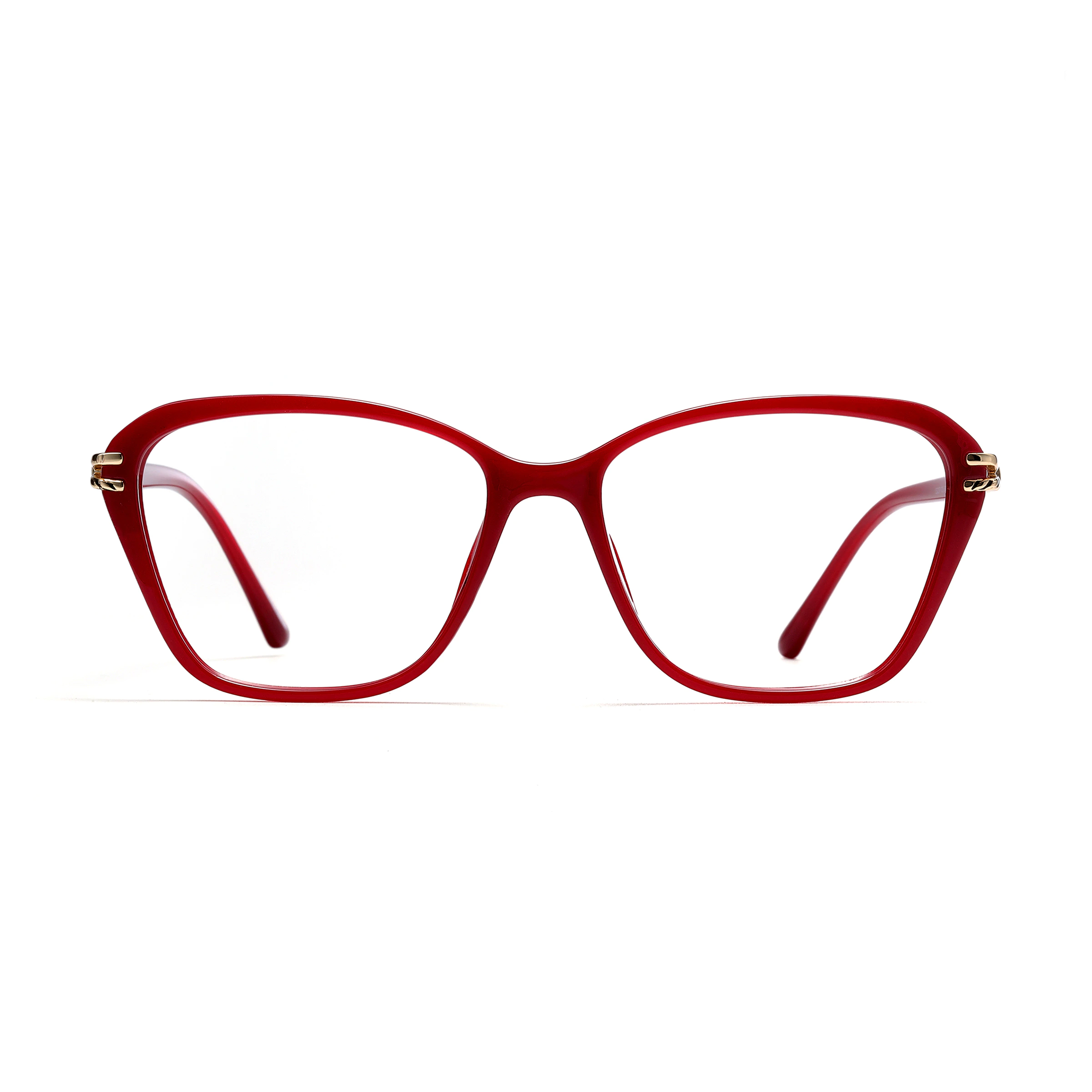 Bold red cat-eye frames bring a confident, fashion-forward statement for women. Built from a plastic-metal combination, the temples feature a metal core wrapped in glossy plastic for durability and comfort. All spring hinges include a knot-style metal accent, making them ideal for parties, dates, or standout everyday wear.