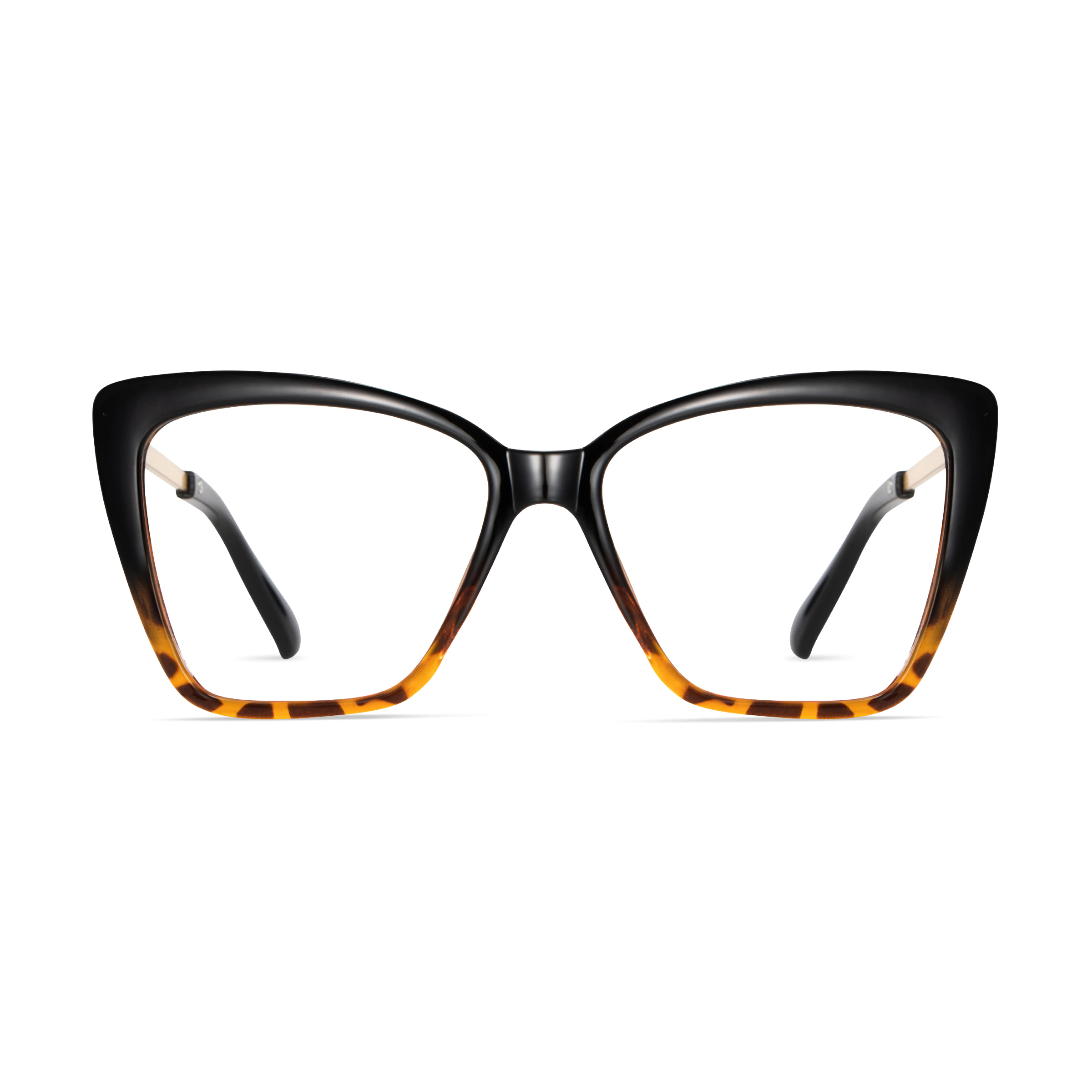 A stylish mix of black and tortoiseshell acetate, complemented by golden temples, gives these cat-eye glasses a timeless yet modern appeal. Ideal for daily wear or casual outings, they add warmth and charm to any outfit.