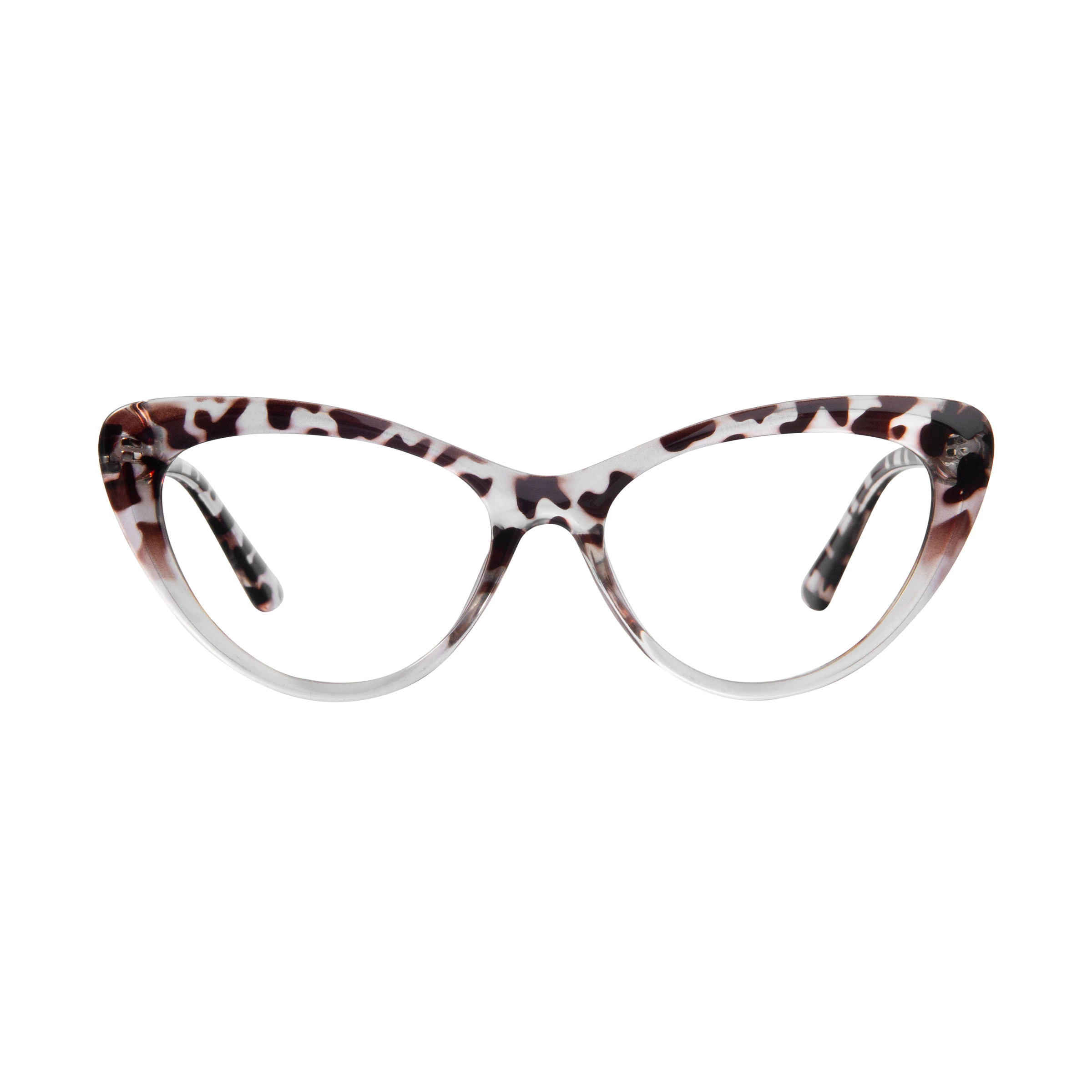 The tortoiseshell/clear cat-eye frame combines the classic tortoiseshell pattern with a modern clear finish, creating a unique and stylish look. The tortoiseshell design brings warmth and depth, while the clear lower half keeps it fresh and light. The cat-eye shape adds a touch of vintage charm, perfect for those who love retro designs with a modern twist.