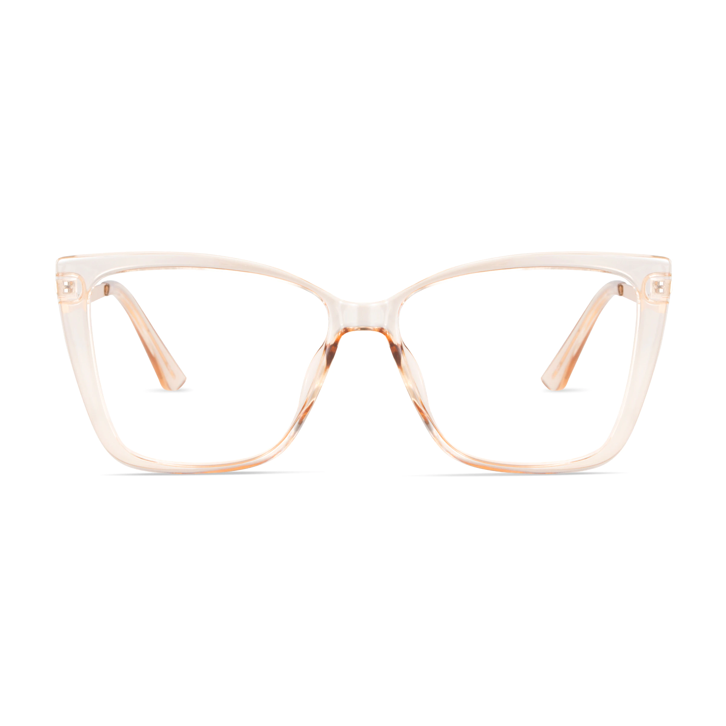 Transparent amber cat-eye glasses offer a subtle, elegant look with gold details. Perfect for adding a gentle touch of glamour to any outfit, ideal for work or leisure.