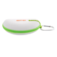 This brisky white 'n' green case is a wonderland that keeps kid's glasses from harm when zippered, hooking easily to a schoolbag or backpack via attached carabiner hook.