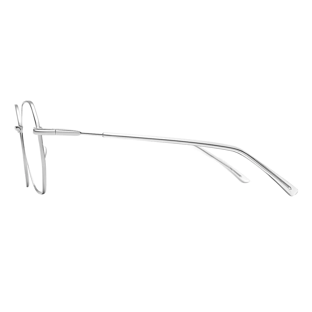 Keep your look cool and contemporary with these silver geometric eyeglasses. The full-rim metal frame offers durability, while the sleek silver finish gives a polished and refined appearance. Perfect for those who love a clean and modern aesthetic.