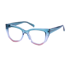 Embrace a unique and vibrant style with these Blue-Purple Geometric eyeglasses. The captivating combination of blue and purple with a geometric frame makes these glasses a standout piece in any collection. Designed with TR90+CP, they offer comfort and resilience.