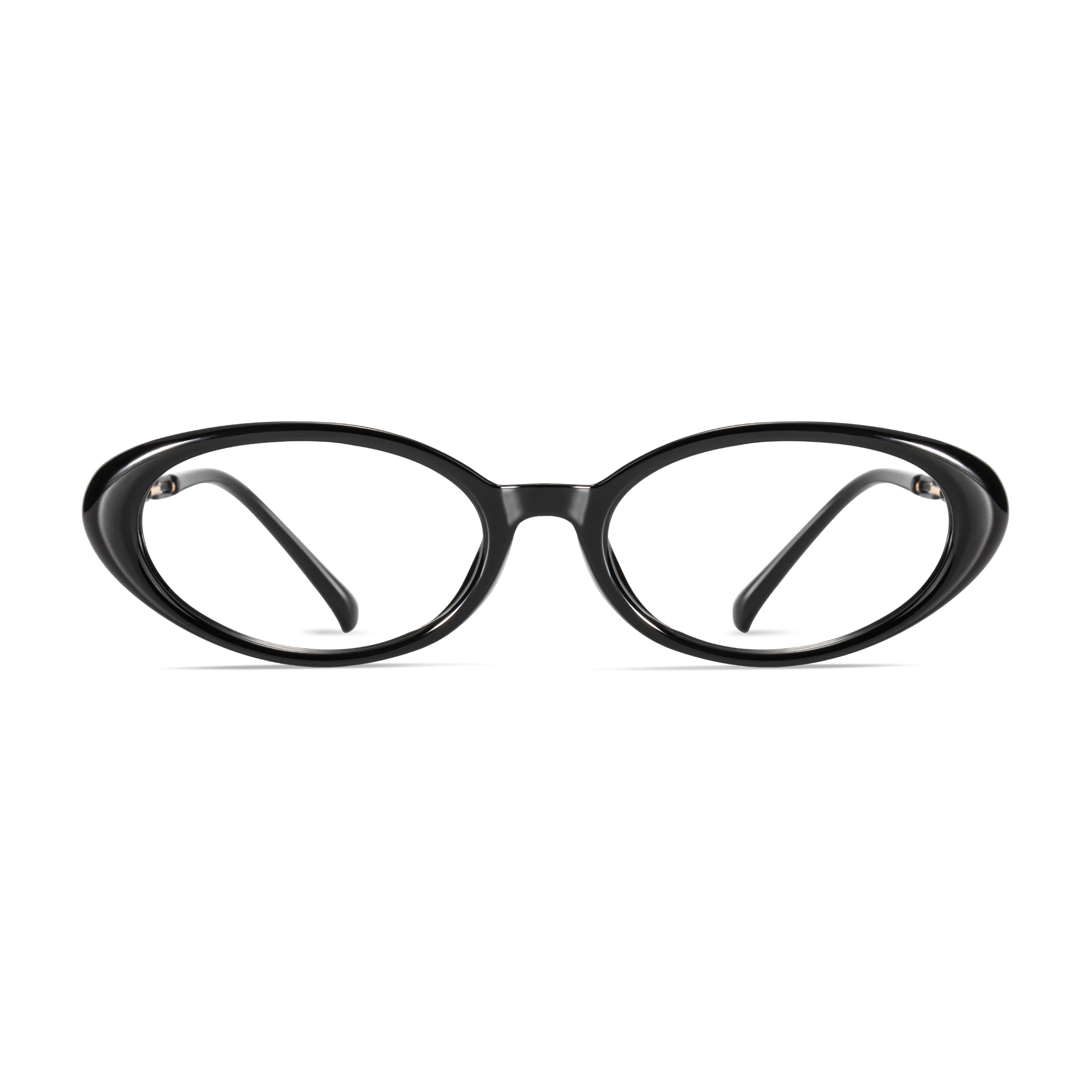 Elegant black cat-eye frames feature a minimalist silhouette crafted from durable TR90 and subtle metal accents. This timeless design brings confident sophistication to modern professional and chic urban looks.