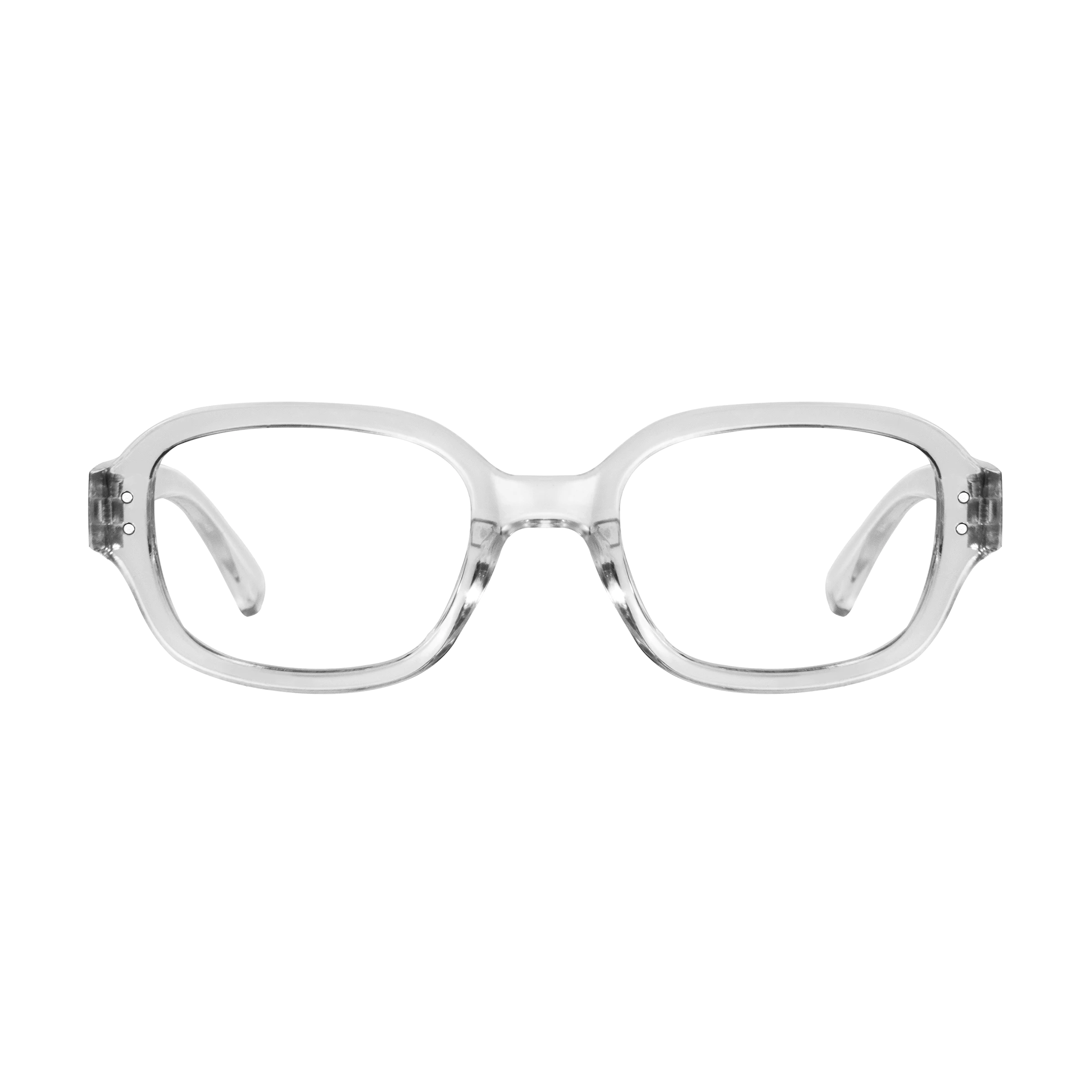 The transparent rectangle frame offers a minimalist yet stylish look. Its see-through design gives it a clean, light feel, making it perfect for those who appreciate simplicity. The classic rectangular shape ensures a flattering, timeless look, while the transparency adds a modern twist to an otherwise traditional style.