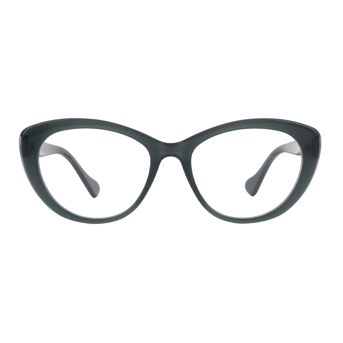 These cat-eye eyeglasses in dark green are a vintage-inspired choice. The full-rim acetate frame features a deep green color, adding a classic yet trendy touch to your eyewear collection.