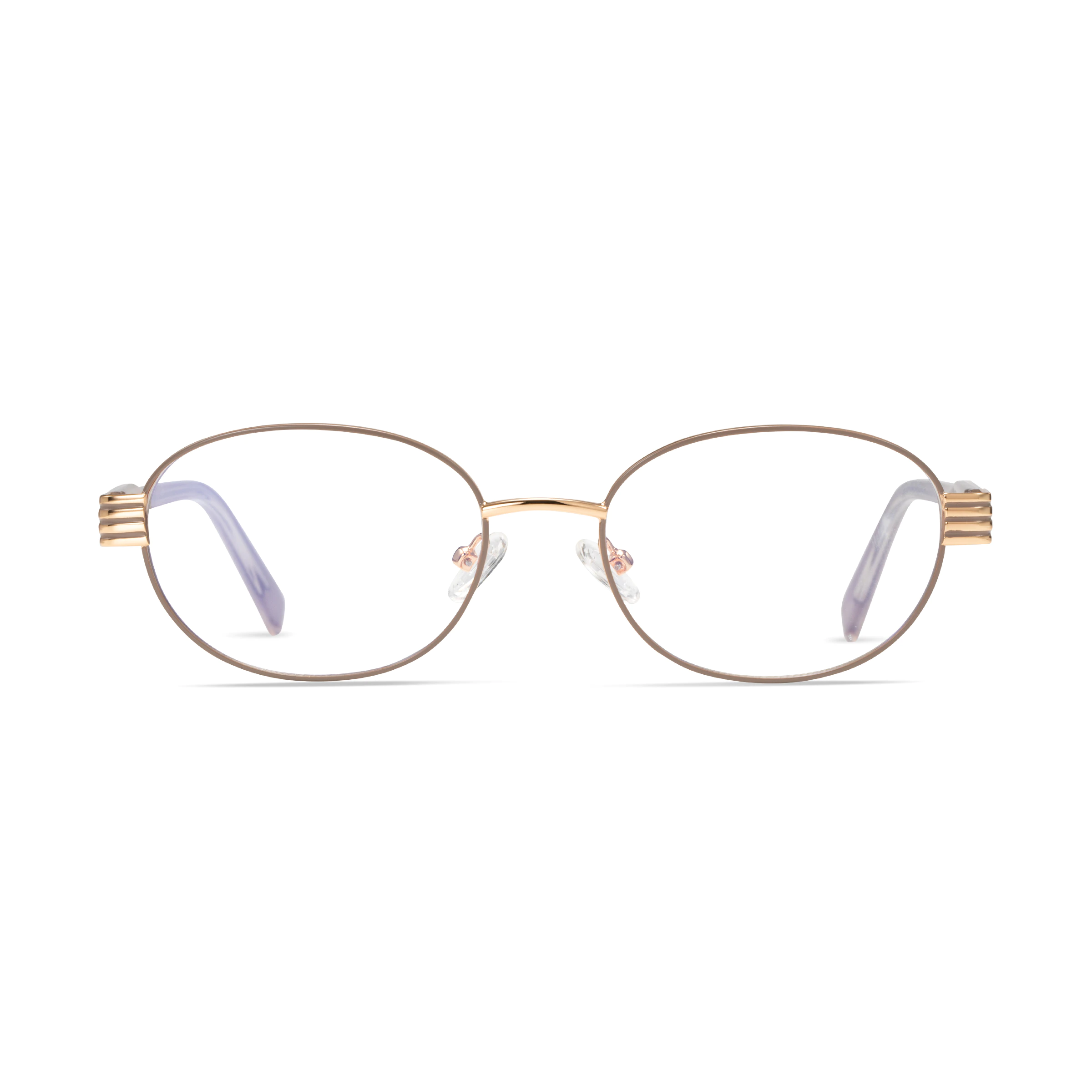 Sleek and sophisticated, these gold oval glasses feature delicate detailing and clear temples, offering a refined and timeless design suitable for any occasion.