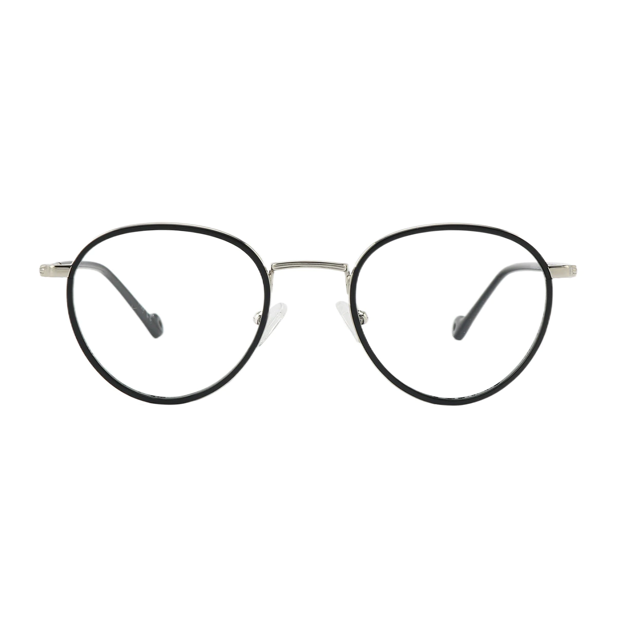 Sleek silver contrasts with deep black to form a striking oval frame that exudes both class and modernity. The acetate and metal materials provide a lightweight, yet sturdy construction for a comfortable all-day wear.