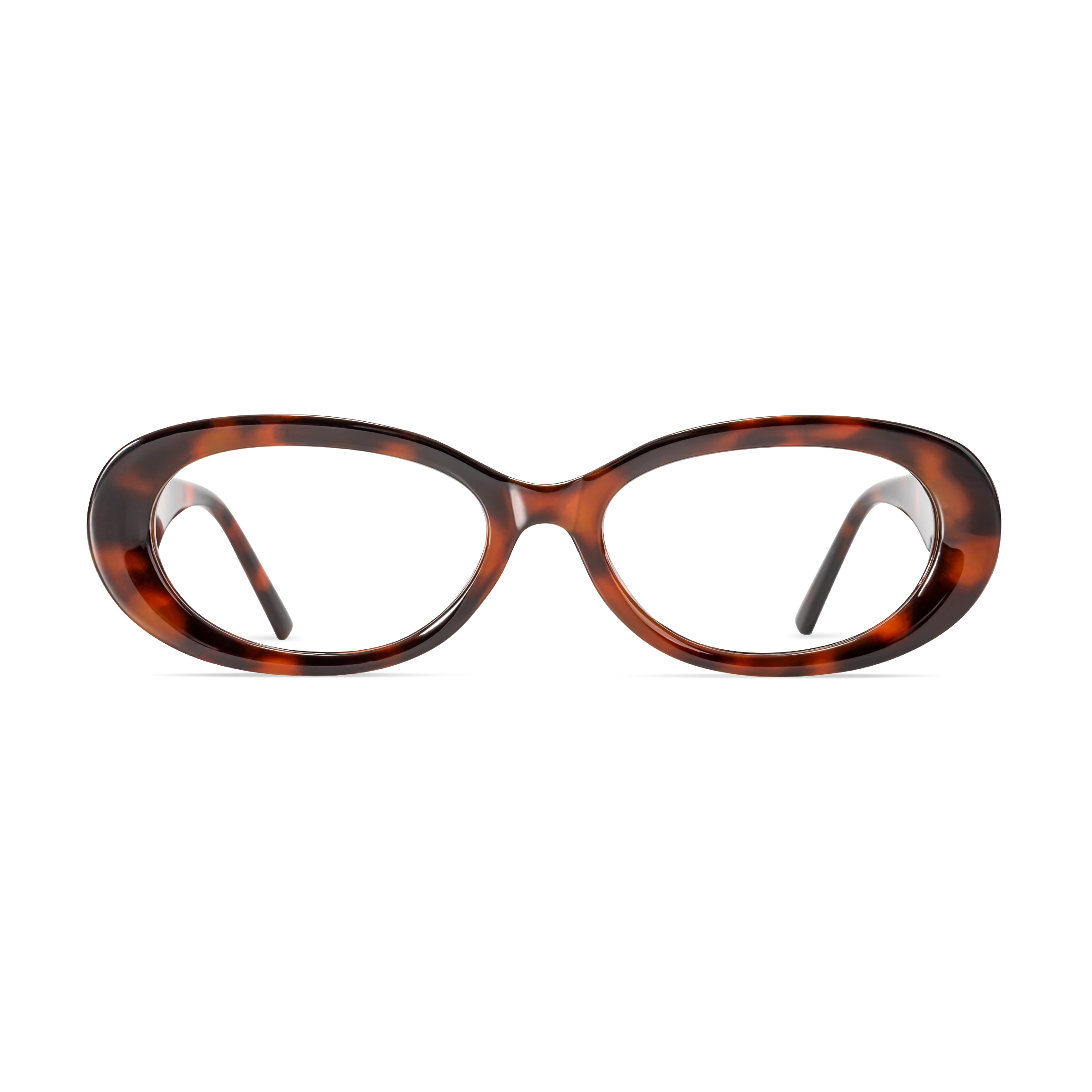 This oval frame features an elegant tortoiseshell pattern, blending retro charm with modern style. Made from lightweight PC material, it offers a trendy and sophisticated choice for everyday wear and social events.