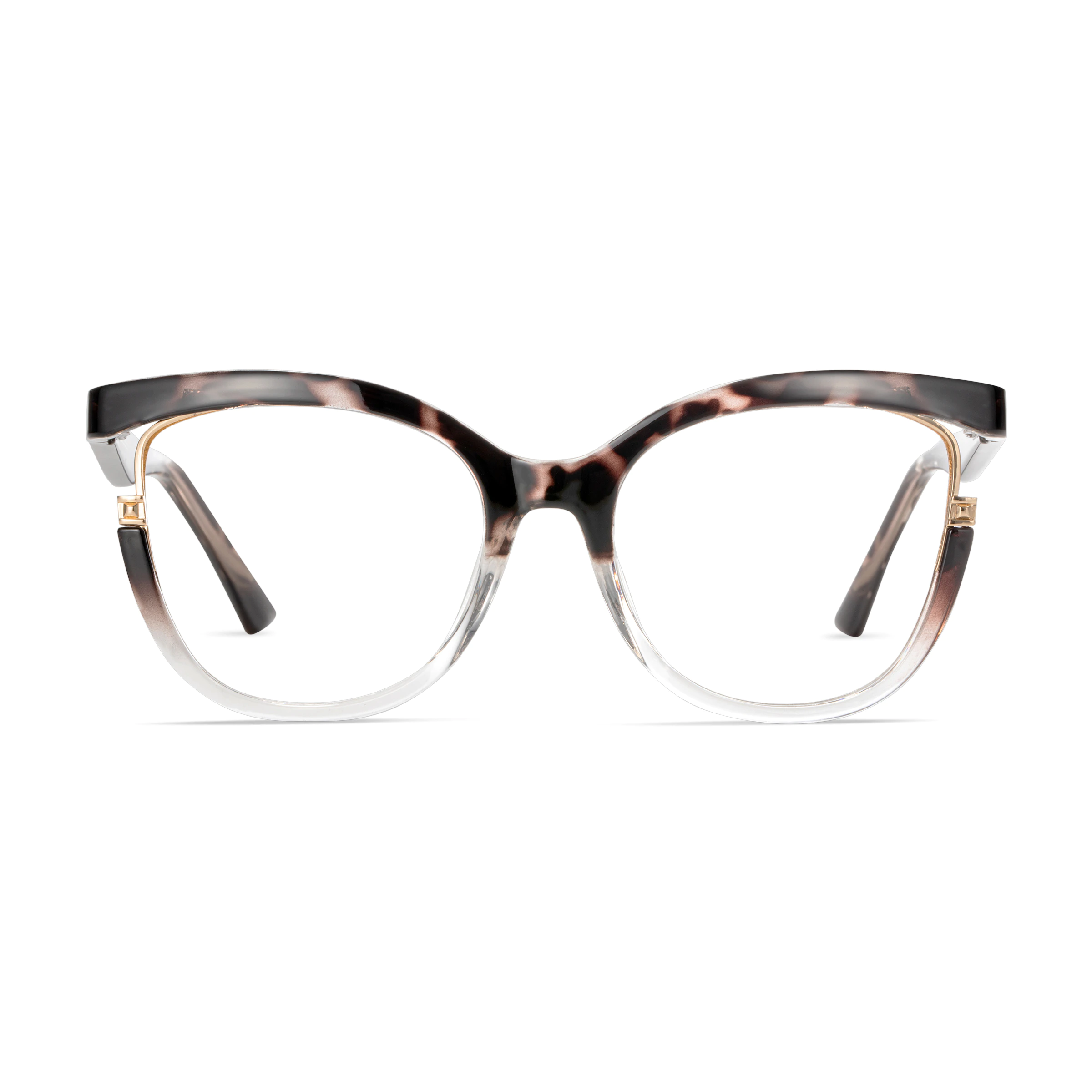 A modern cat-eye silhouette paired with a black-to-clear gradient finish gives this frame a fresh, airy feel. Its smooth lines and subtle contrast make it effortlessly stylish.