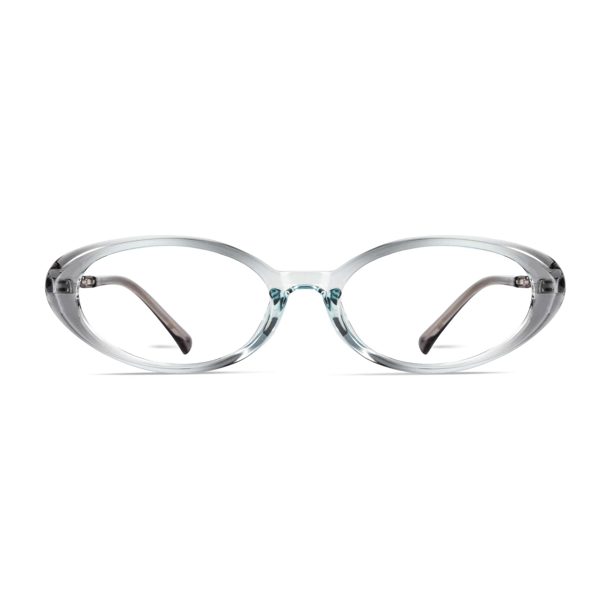 Lightweight transparent blue acetate frames with refined metal elements offer a vibrant yet elegant cat-eye silhouette. Ideal for casual outings and creative workplace settings, blending modern color with versatile charm.