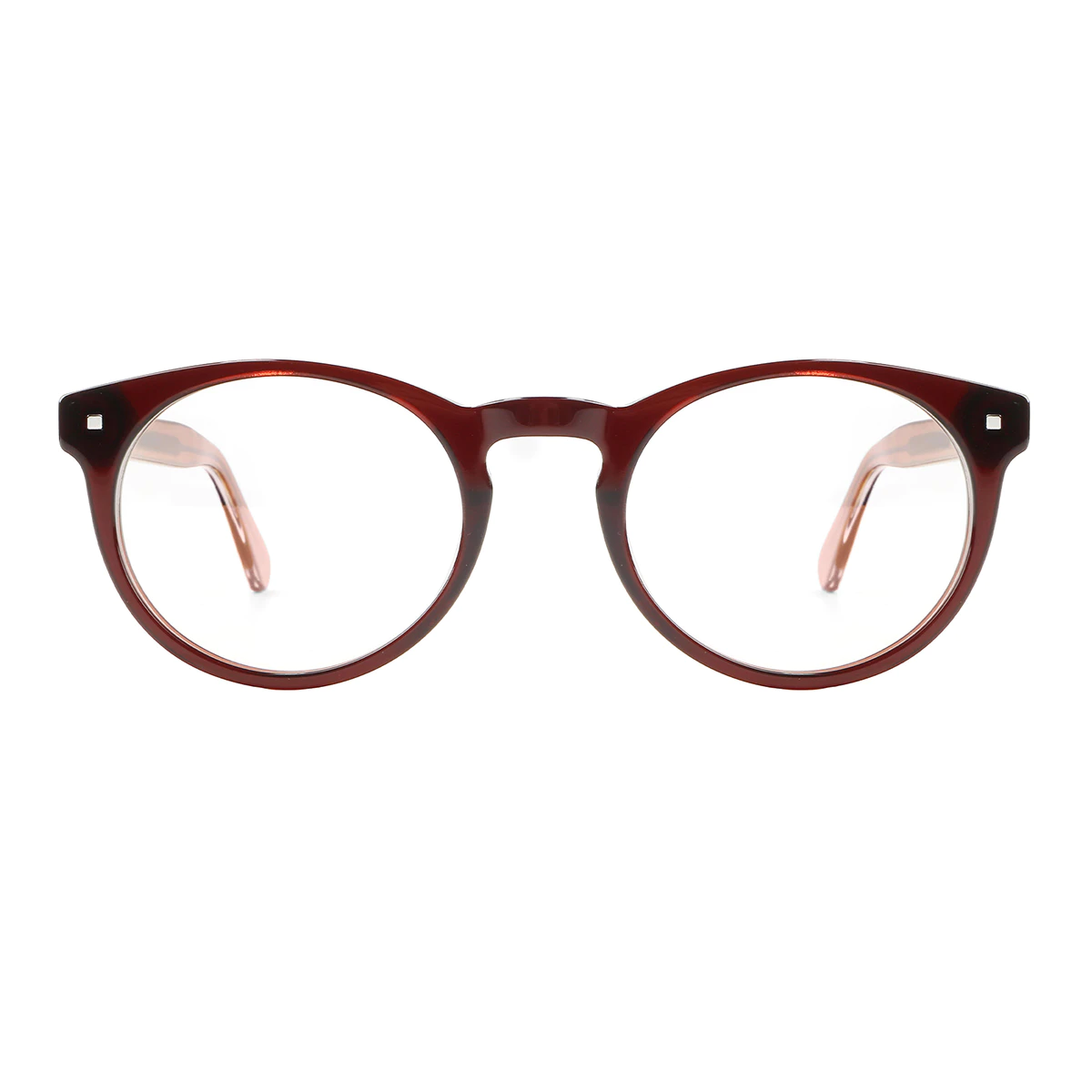 The round lenses and classic color finish of these eyeglasses gives them a sophisticated, intelligent vibe. The squre hinge studs add a little extra flair to this frame, while the acetate constructions keeps them durable. Blink is great for adding a touch of class to your outfit.