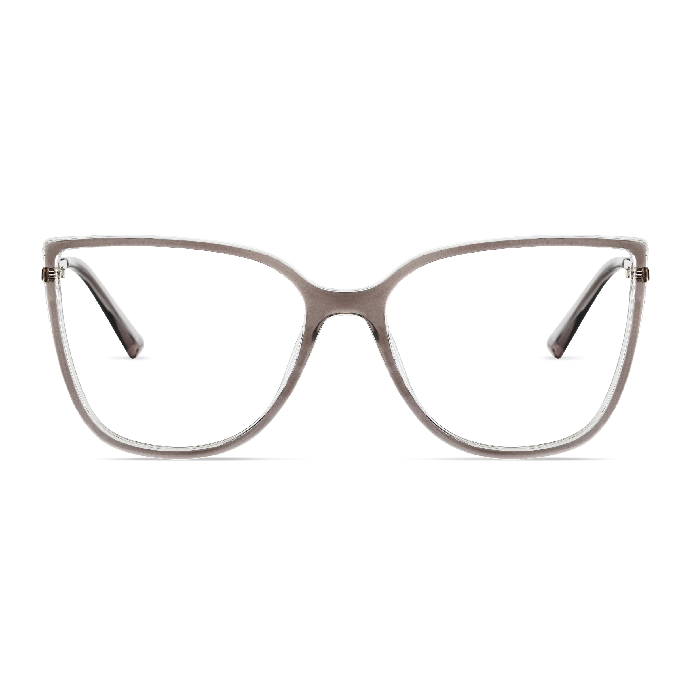 Oval transparent gray eyeglasses feature a sleek modern look with their soft gray TR&Metals frame. The lightweight oval shape enhances facial features while offering all-day comfort, perfect for both professional settings and casual wear.