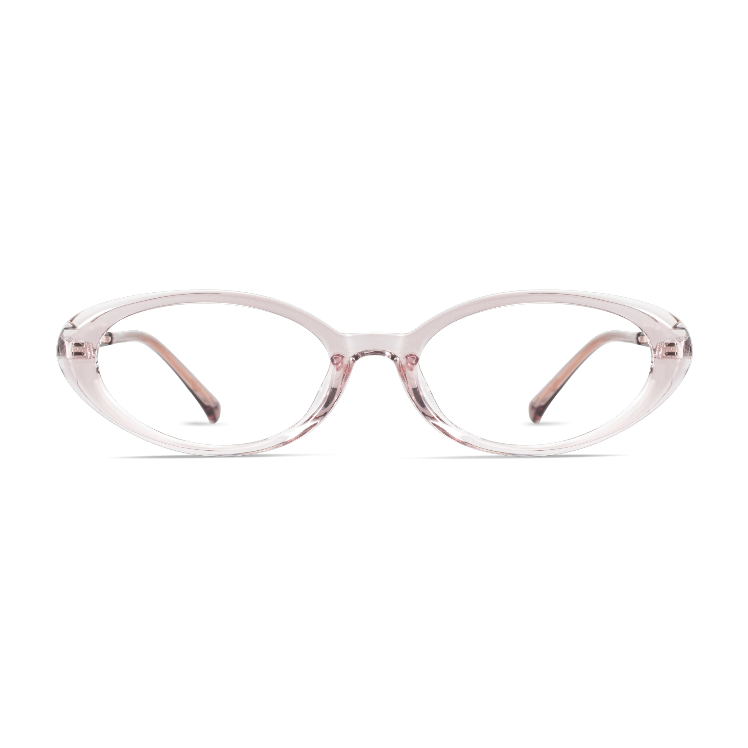 Soft transparent pink acetate in a contemporary cat-eye shape, enhanced with delicate metal detailing. The fresh feminine appeal is perfect for everyday chic styling and expressive daytime wear.