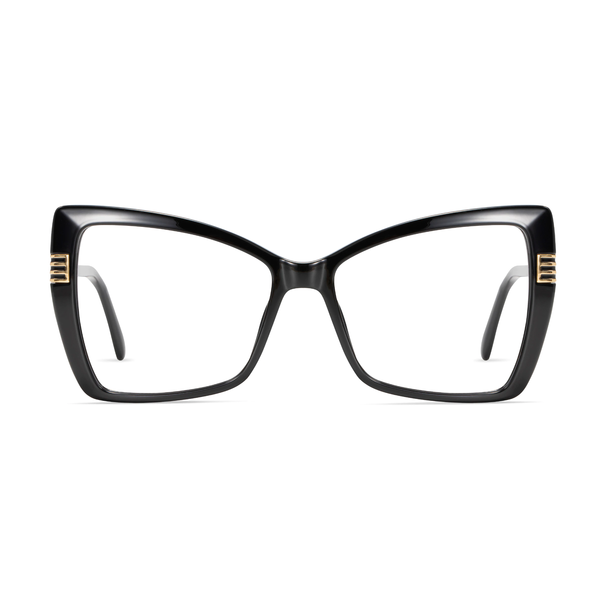 Sleek black cat-eye glasses feature a glossy finish with elegant gold accents on the temples. Crafted from lightweight acetate, these frames offer a bold yet refined look, ideal for formal events or smart-casual occasions.