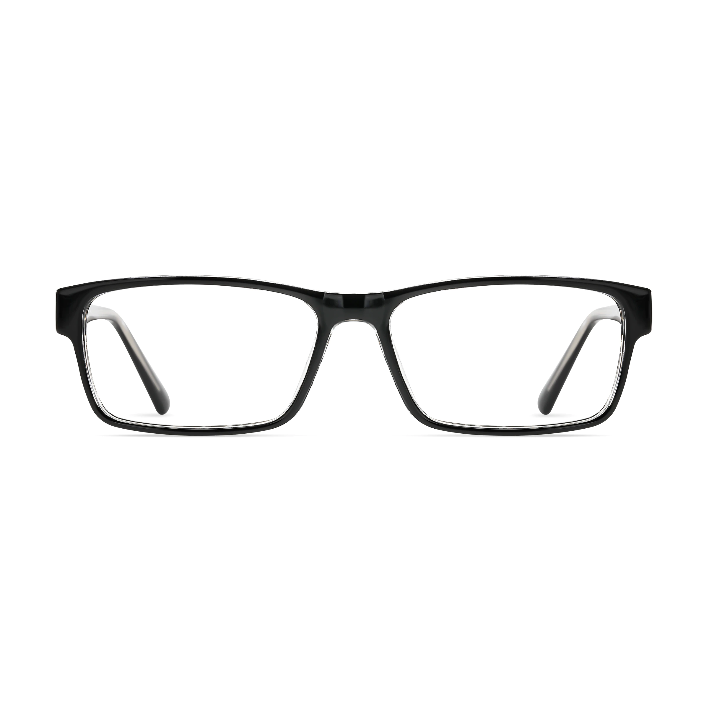 The black and transparent rectangle frame offers a modern, layered look. Made from durable and flexible TR90, it provides versatile unisex styling for daily office work and casual urban wear.