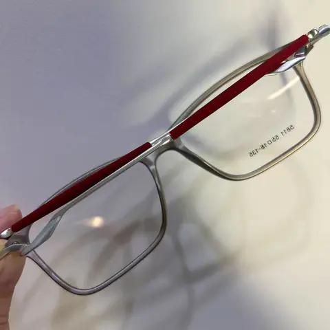 Crafted from durable TR90 and metal, our Gray/Silver Rectangle glasses feature a full-rim design for lasting comfort and style. The sleek finish and red temple tips add a modern touch, perfect for work, leisure, or everyday wear.