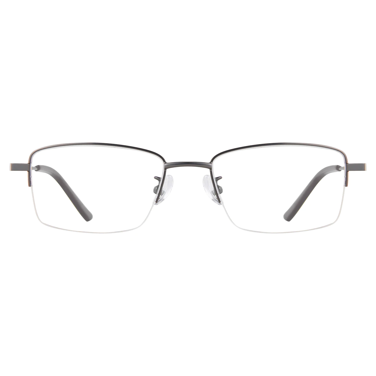 Gun metal glasses with a rectangular shape feature a contemporary design with a sleek finish. The full-rim metal frame provides both strength and a unique style, making these glasses a versatile choice for various occasions.