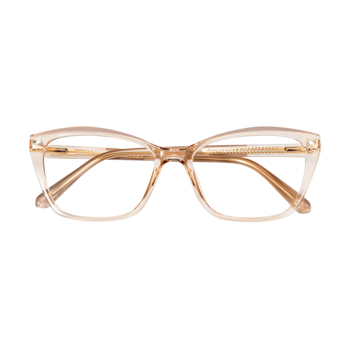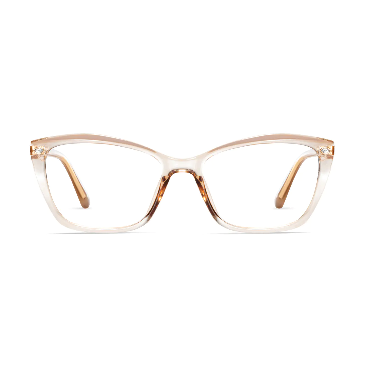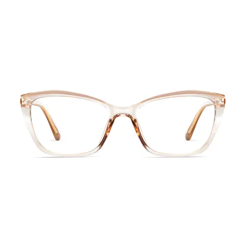 Crafted from transparent amber plastic with a minimalist design, these frames offer understated elegance and all-day comfort. Ideal for office wear or leisurely activities, they complement various looks with timeless simplicity and effortless charm.