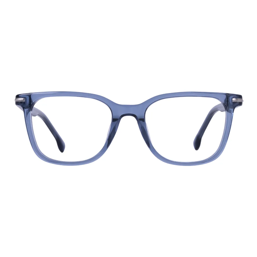 Stand out with these blue-translucent square eyeglasses. The acetate material ensures comfort and durability, while the translucent blue finish adds a distinctive twist to your everyday look.