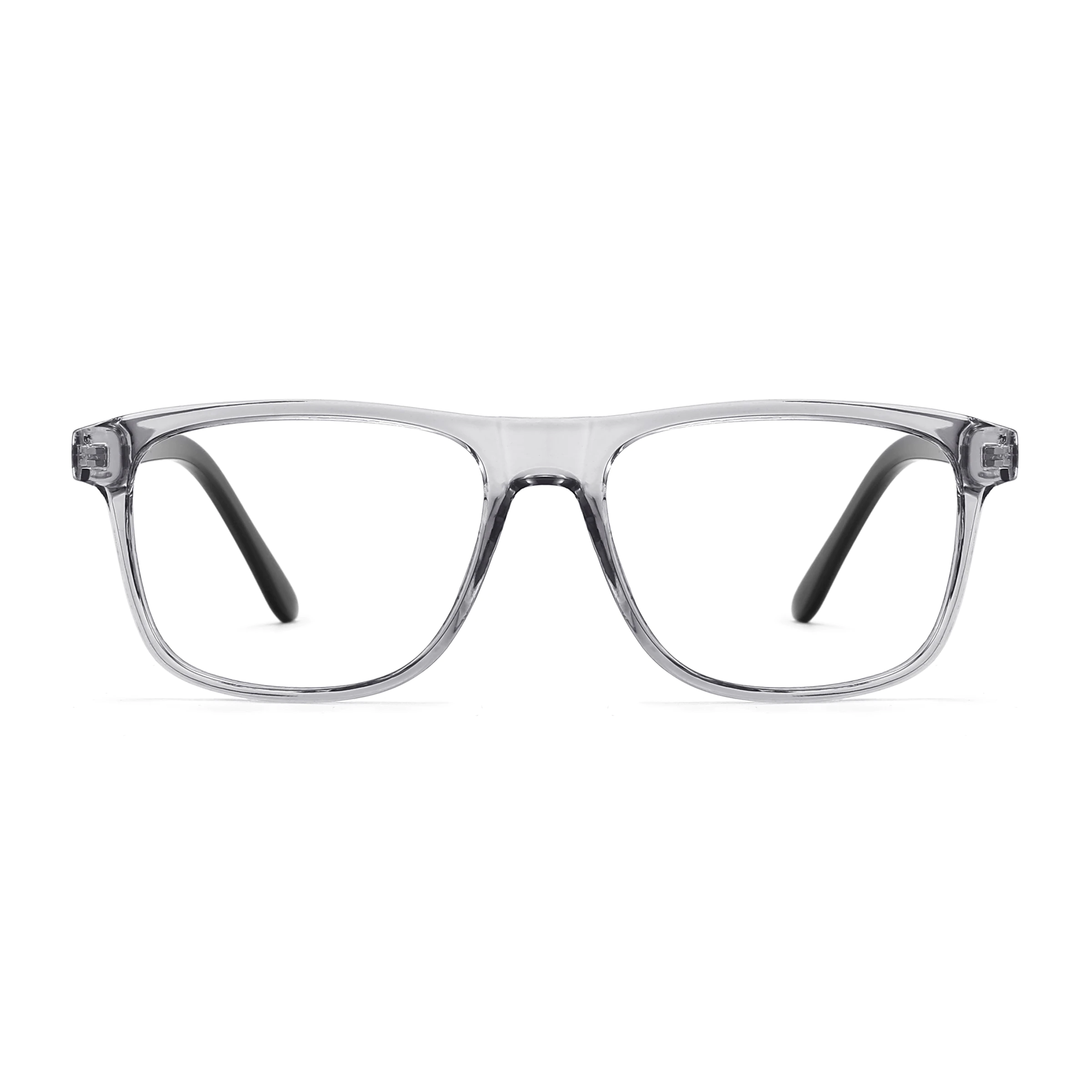 The translucent gray frame offers a modern and minimal aesthetic, making these TR90 rectangular glasses an ideal choice for a clean, refined look.