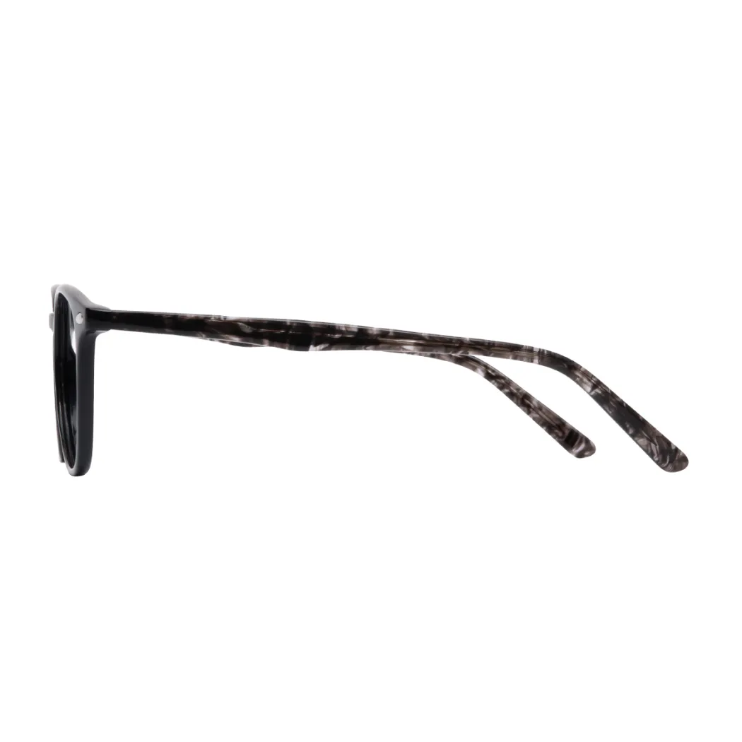 These Black round glasses offer a timeless, classic look with a vintage twist. The black acetate frame provides a sleek and professional appearance, perfect for any setting from the office to social events. Full-rimmed for durability and comfort, these glasses ensure a refined style that complements any outfit while delivering lasting comfort.