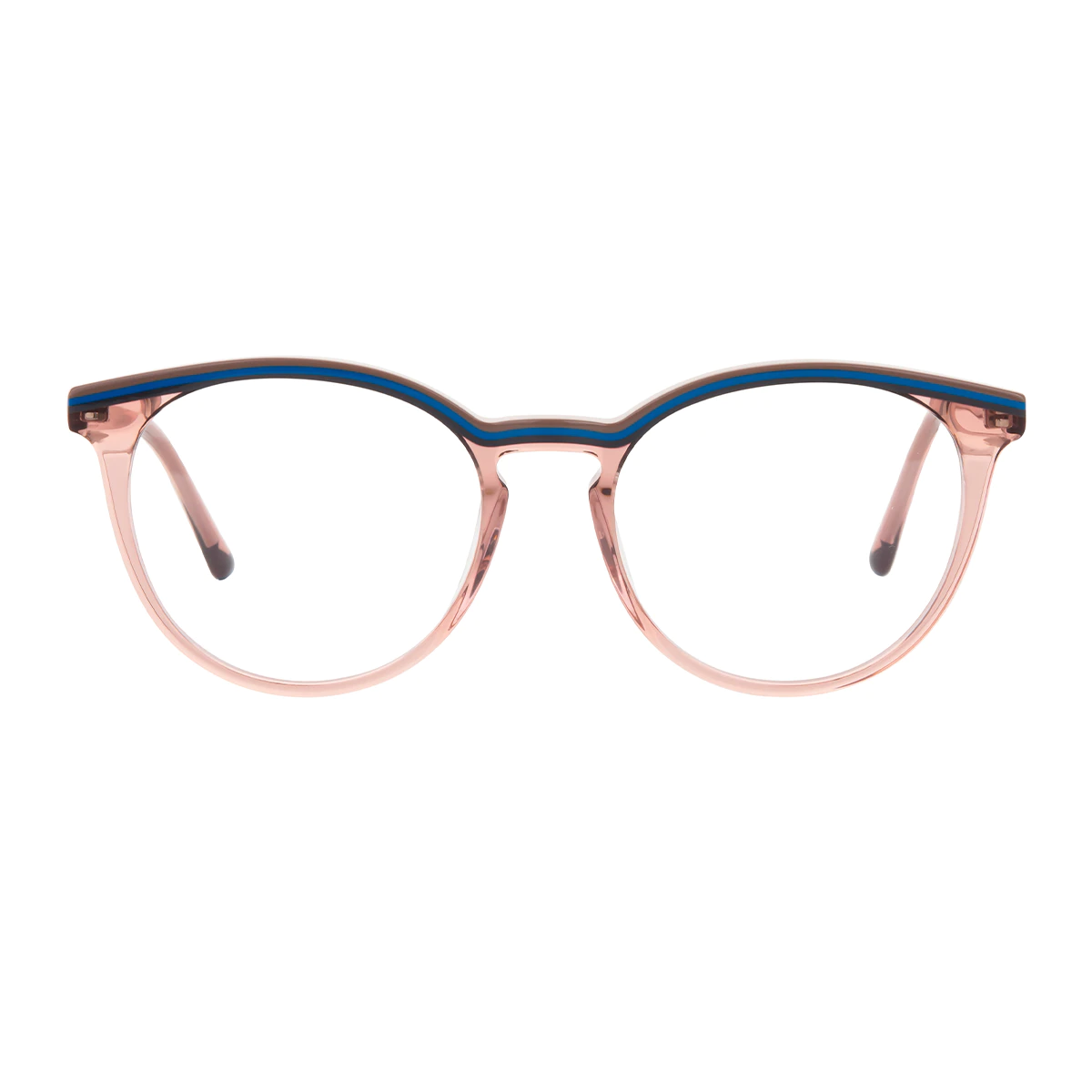 The Blue and Transparent Amber Round Glasses offer elegance and versatility with their striking color combination. The lightweight acetate frame ensures all-day comfort, making these glasses a versatile addition to any wardrobe. Suitable for both casual and formal occasions.