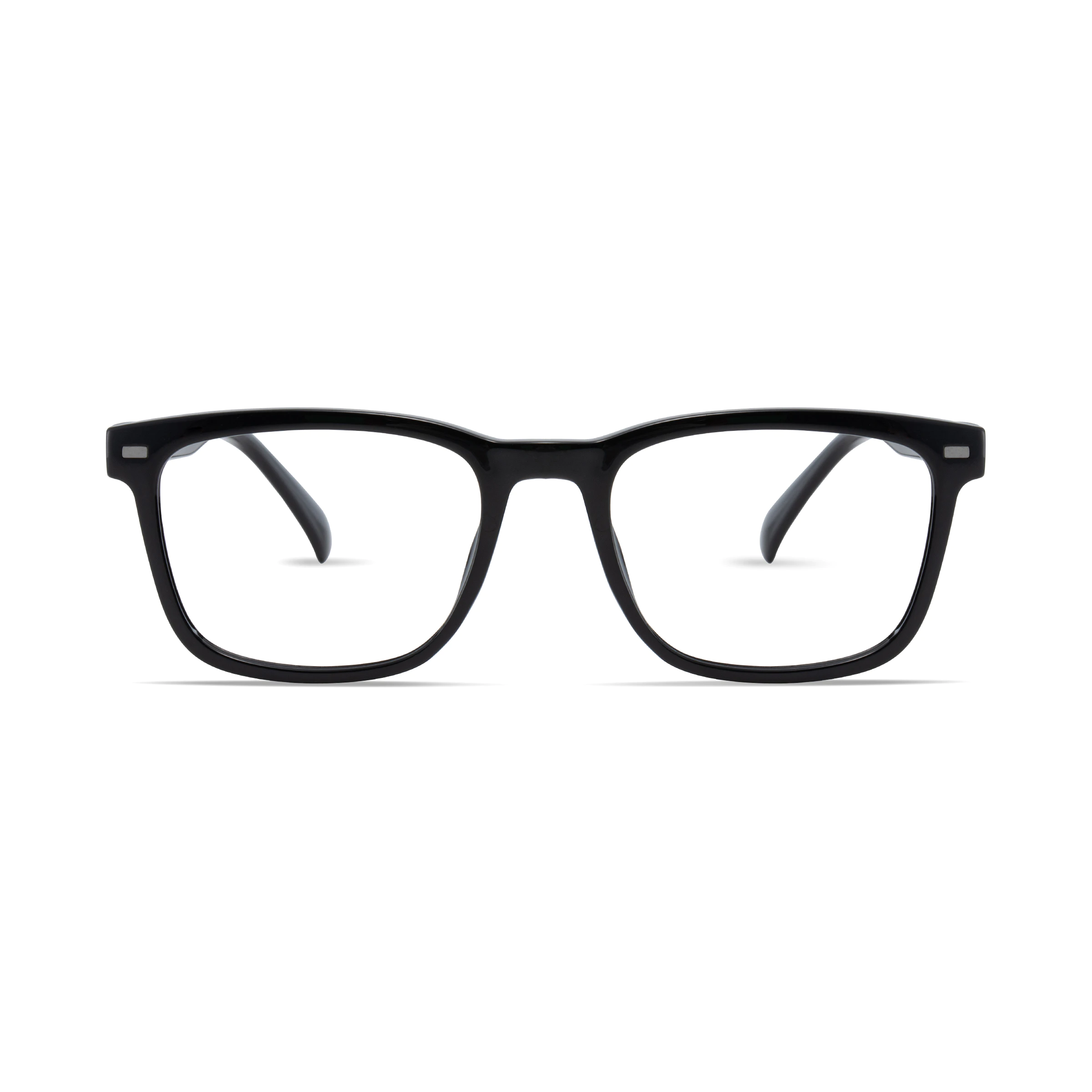 Sleek black acetate frames with a classic square shape and subtle gold-tone temple accents. This versatile style is ideal for young professionals and students, perfect for office or campus wear with an elegant touch.