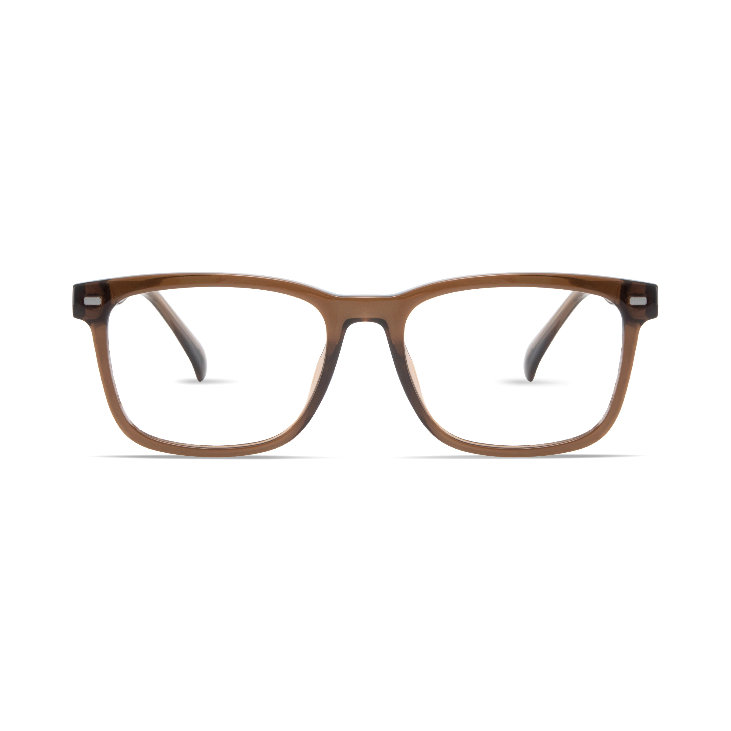 Warm translucent brown acetate frames in a durable, classic rectangular shape. Exuding modern sophistication, they suit fashion-conscious individuals for both casual outings and professional settings with timeless appeal.