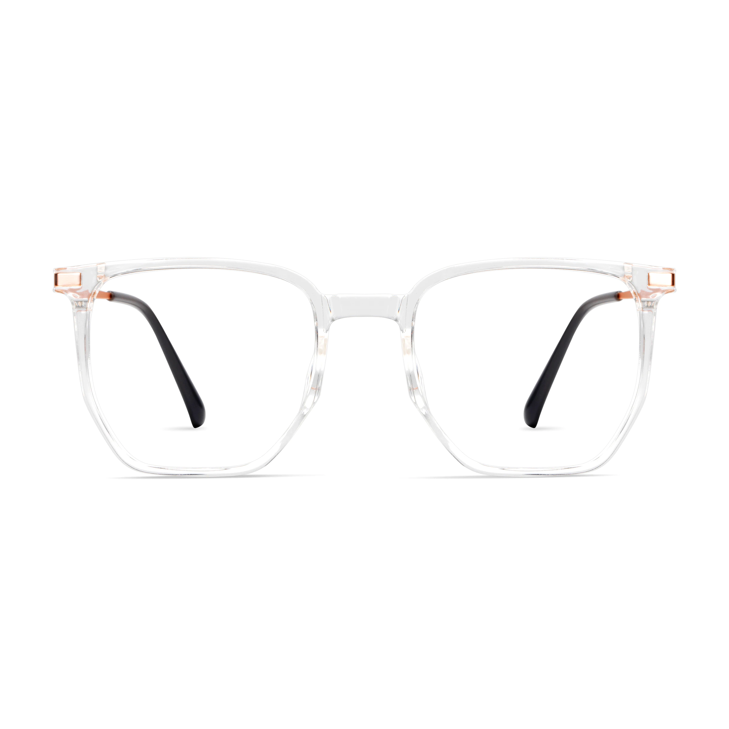 With a stylish clear frame and elegant rose gold temples, these glasses combine sophistication and lightness, ideal for both work and leisure.
